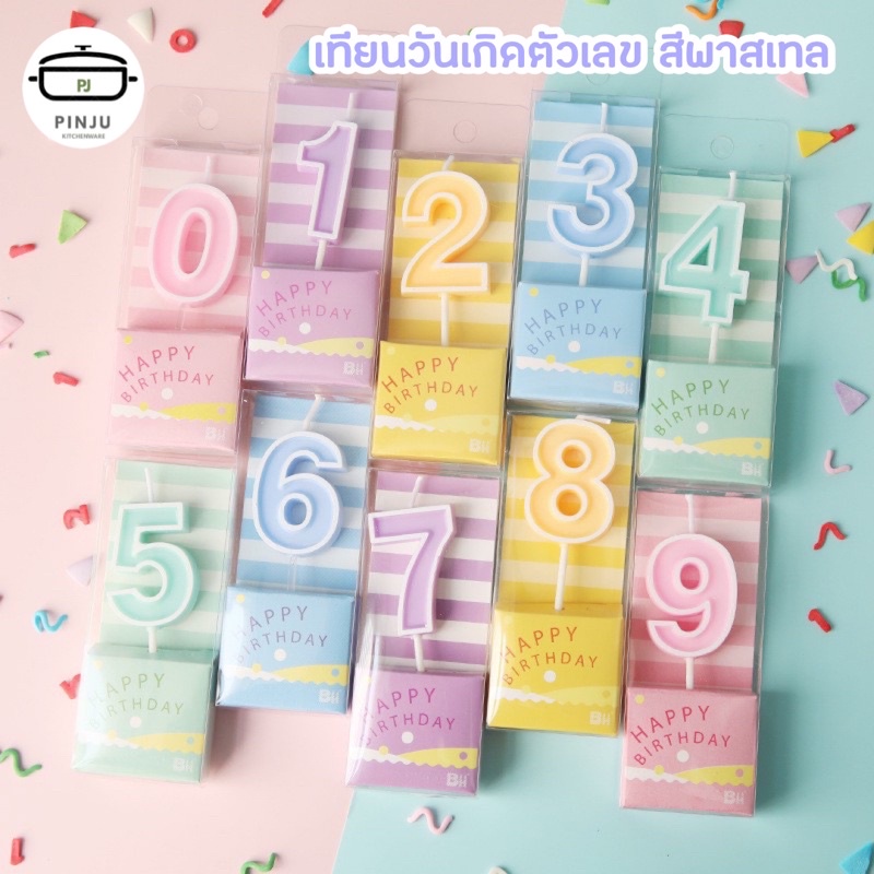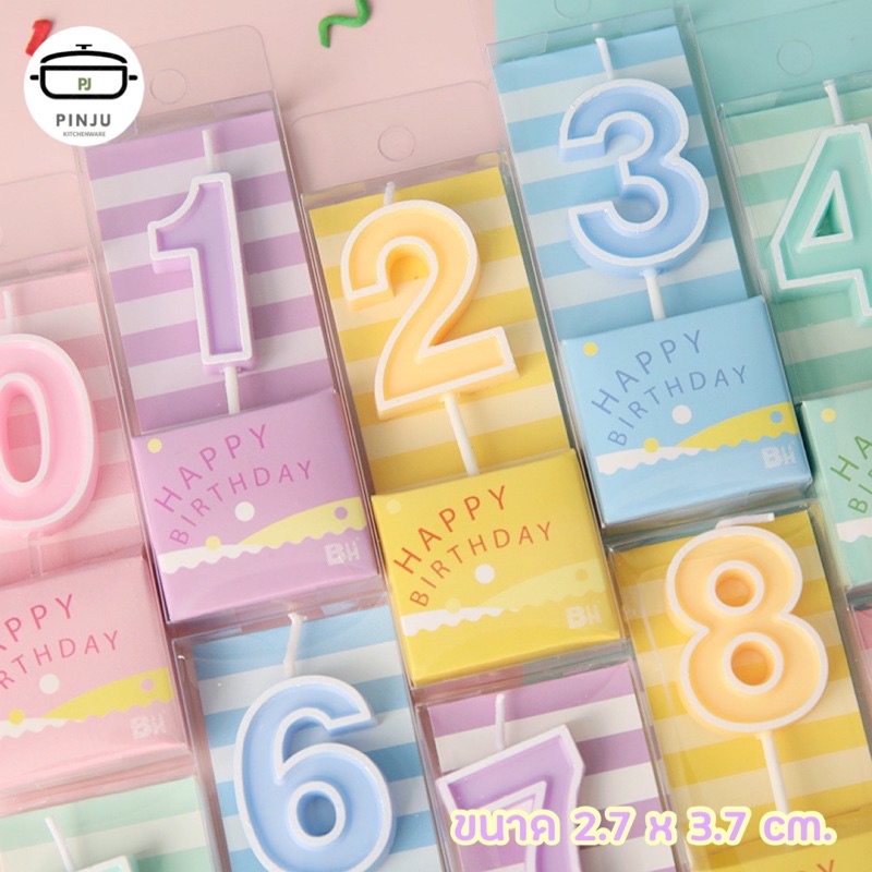 PINJU 🔴 เทียนวันเกิดตัวเลข พร้อมส่ง 5 สี เทียนตัวเลข เทียนวันเกิด เทียนเลข เทียนพาสเทล
