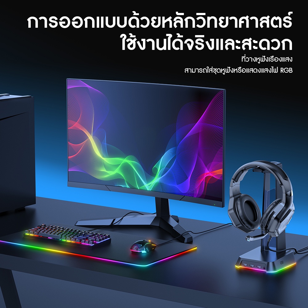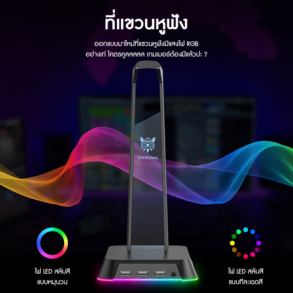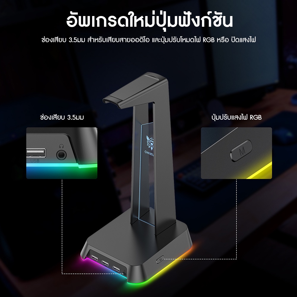 ONIKUMA YAMA ST-2 Hub Headset Stand แท่นวางหูฟัง + ช่อง USB 3 Port + 3.5 mm พร้อมแสงไฟ RGB #Qoomart