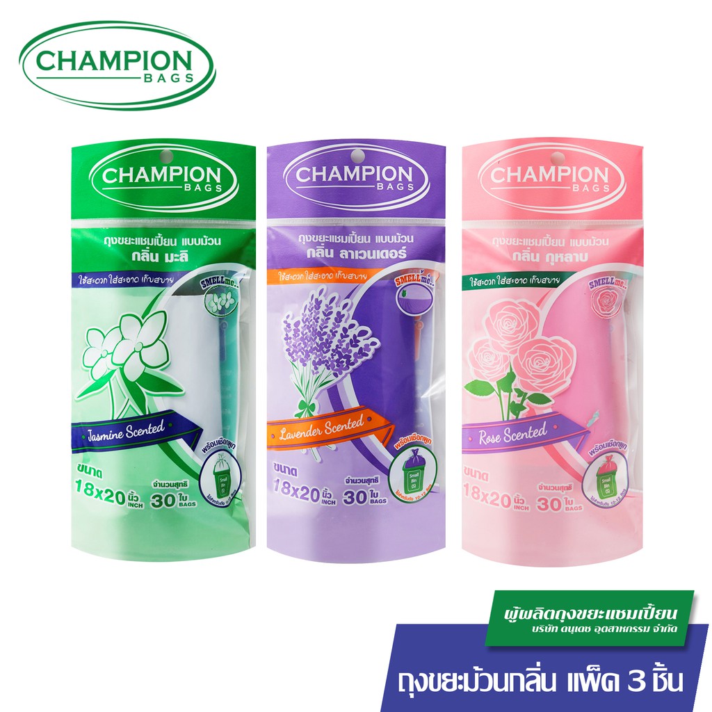 (รุ่นขายดี)[สุดคุ้ม 3 แพ็ก]Champion Bags ถุงขยะแชมเปี้ยน แบบม้วน กลิ่นหอม