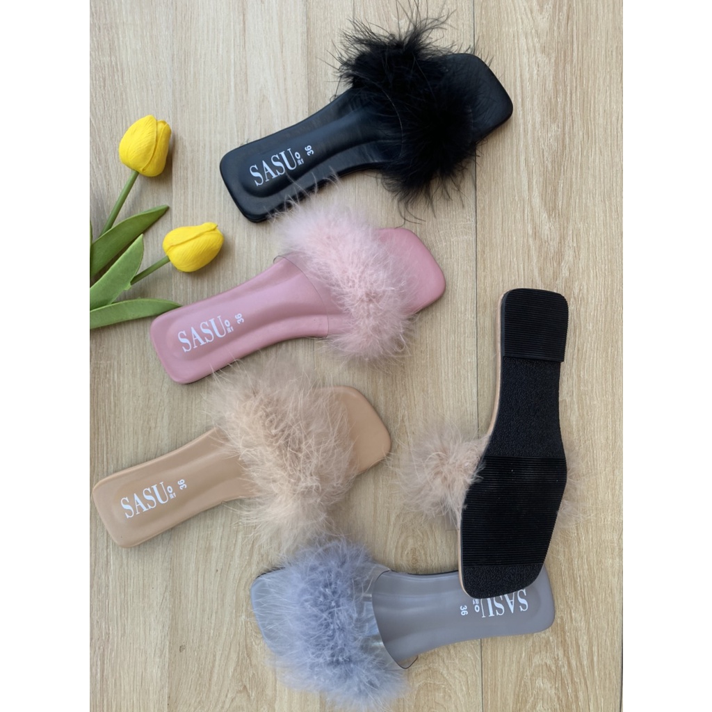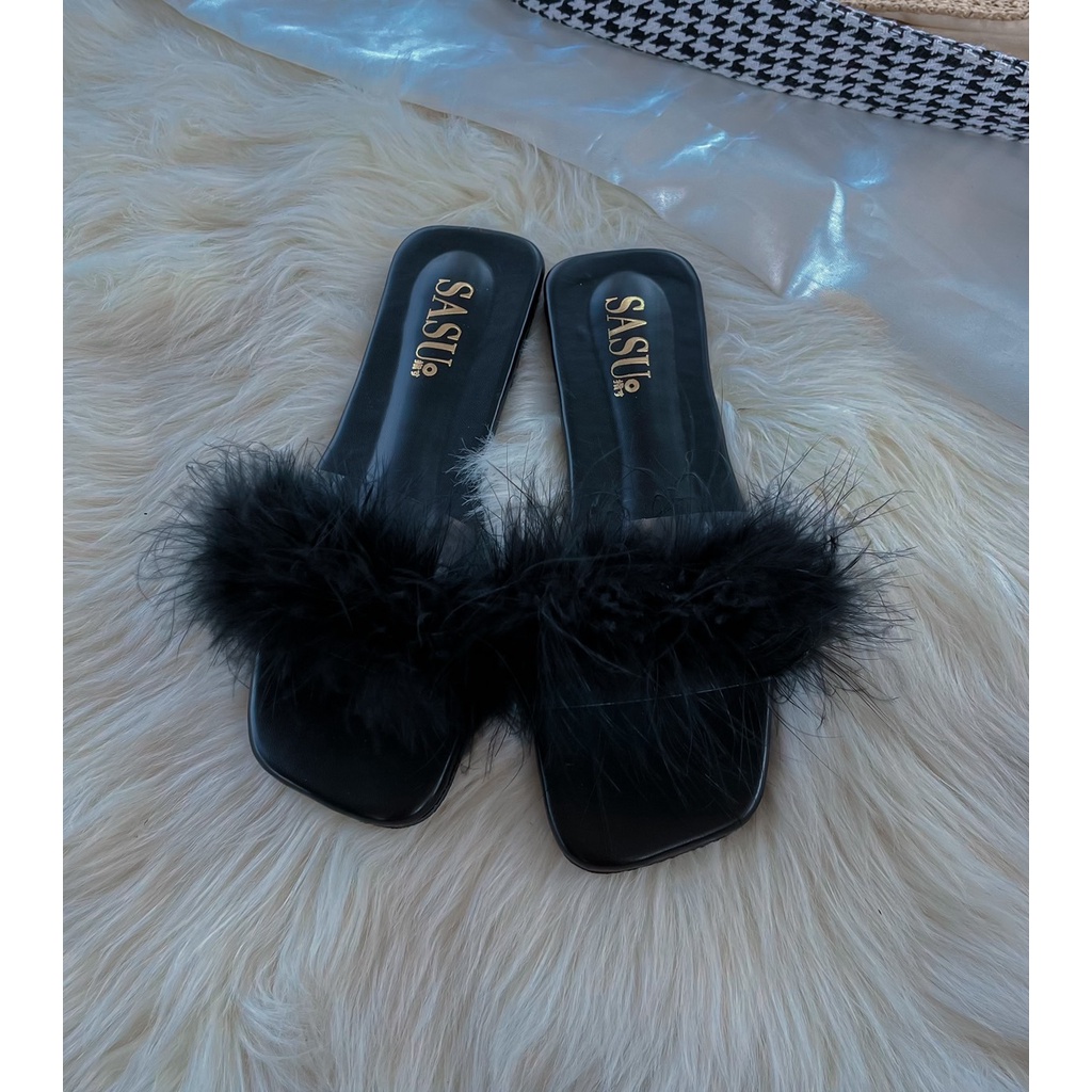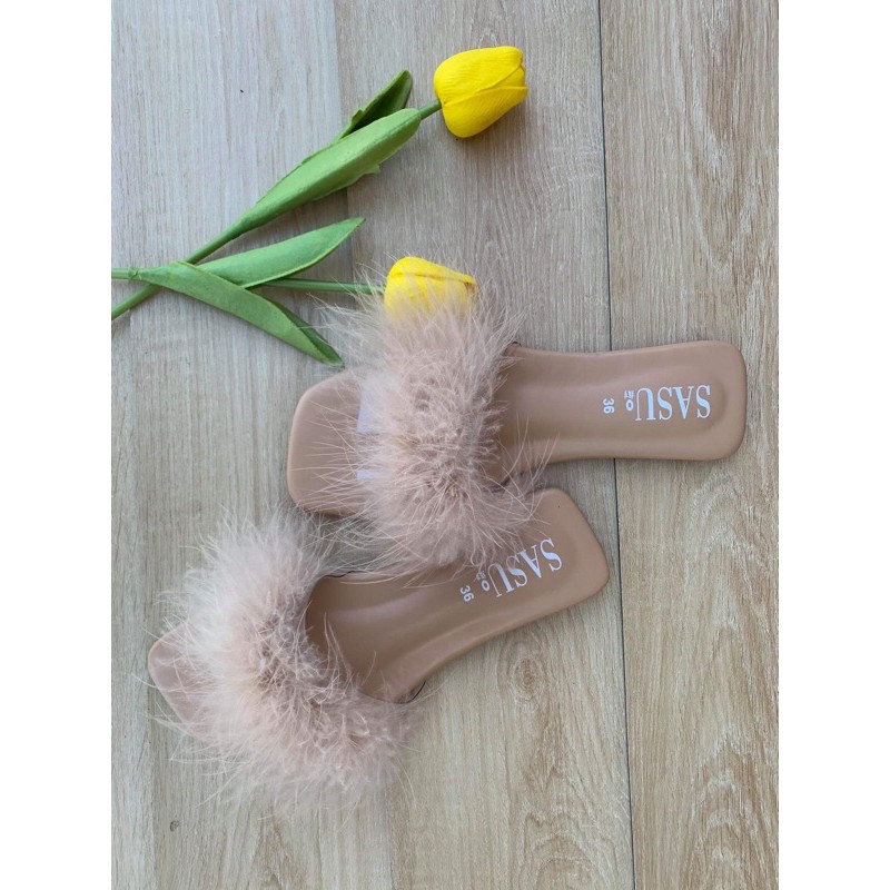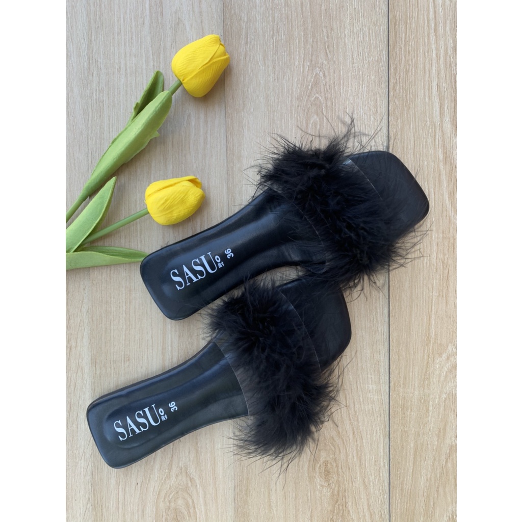 รองเท้า -แตะ สวม แฟชั่น ผู้หญิง 36-40 (รุ่น แตะขนนก) สีสวย ฟรุ้งฟริ้ง น่ารักสดใส