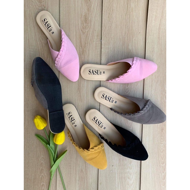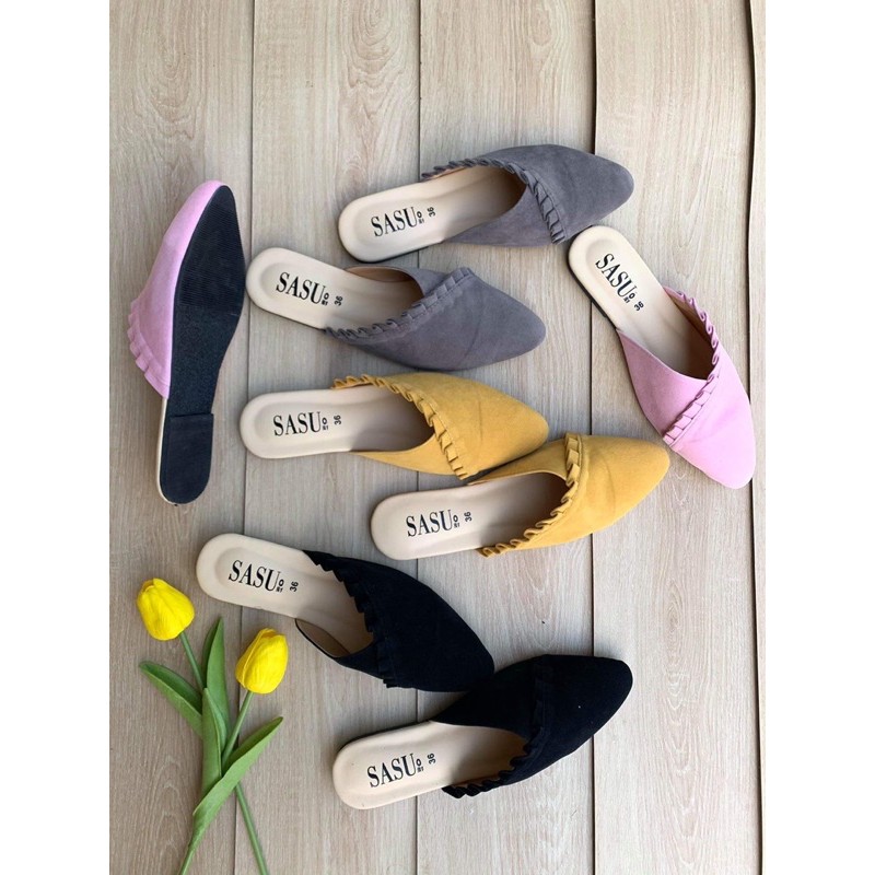 รองเท้า -เปิดส้น คัทชู ผู้หญิง แฟชั่น 36-40 (เปิดส้นกำมะหยีจีบ)พร้อมส่ง รองเท้าน้ำหนักเบามาก สุดหรู