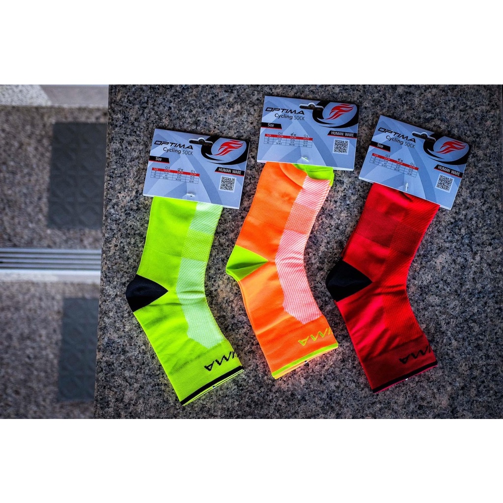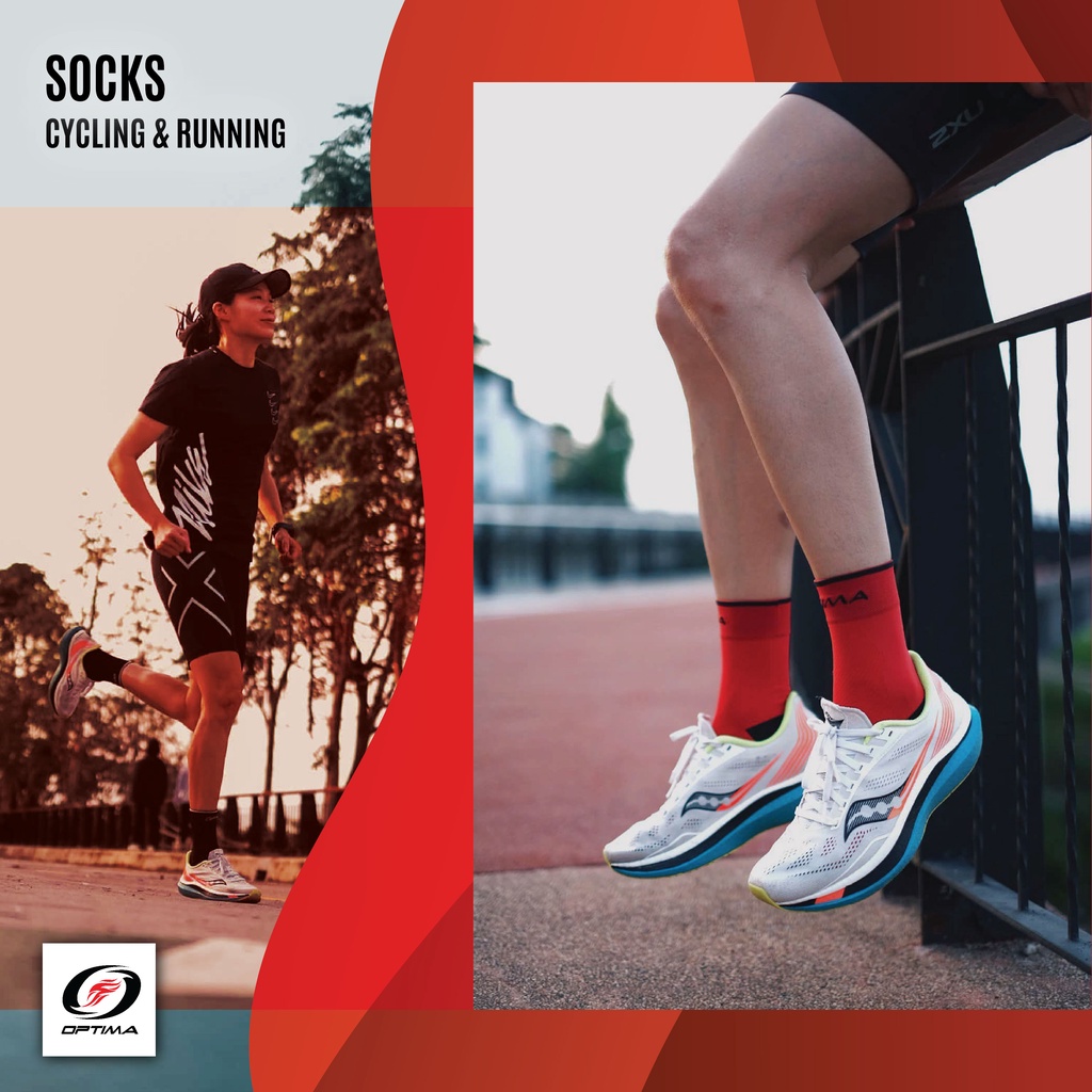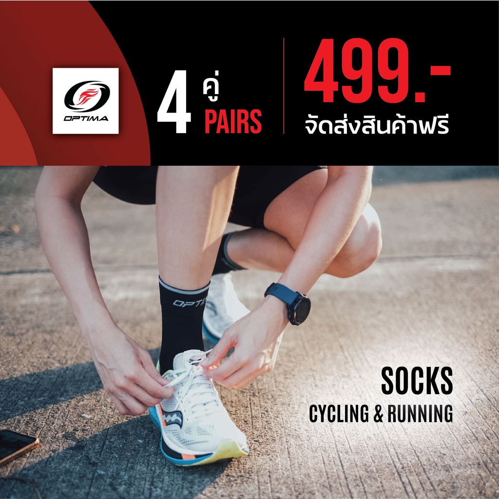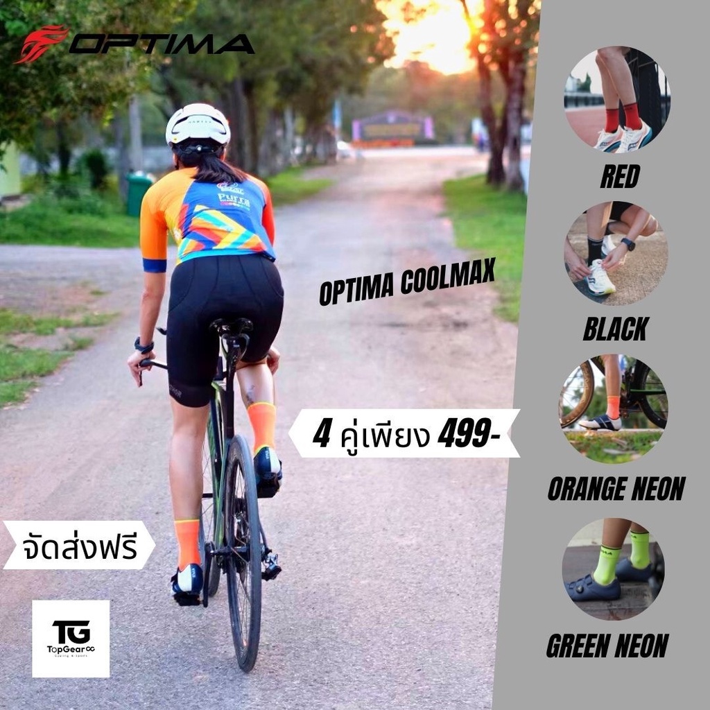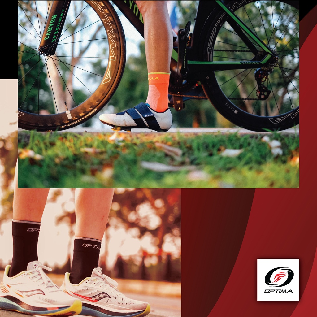 (4 คู่) Optima ถุงเท้าปั่น-วิ่ง ไตรกีฬา Cool-MAX เพื่อการแข่งขัน