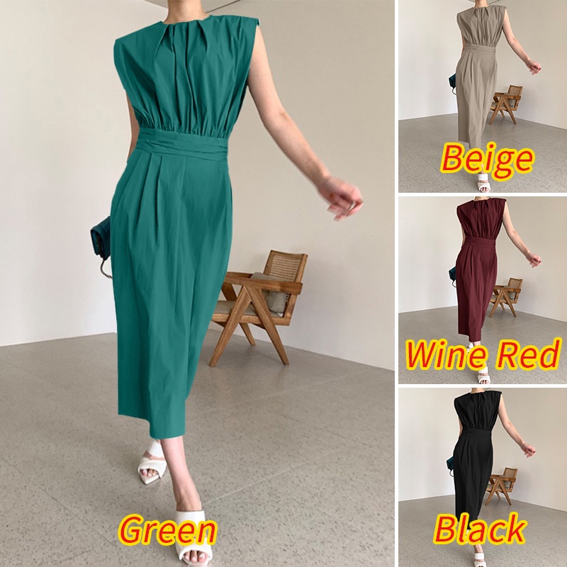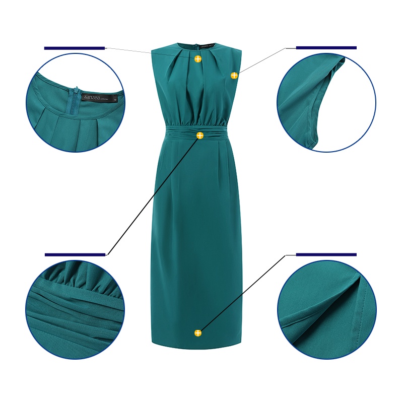 Zanzea ชุดมิดี้เดรส คอกลม แขนกุด มีซิปด้านหลัง สีพื้น สําหรับผู้หญิง