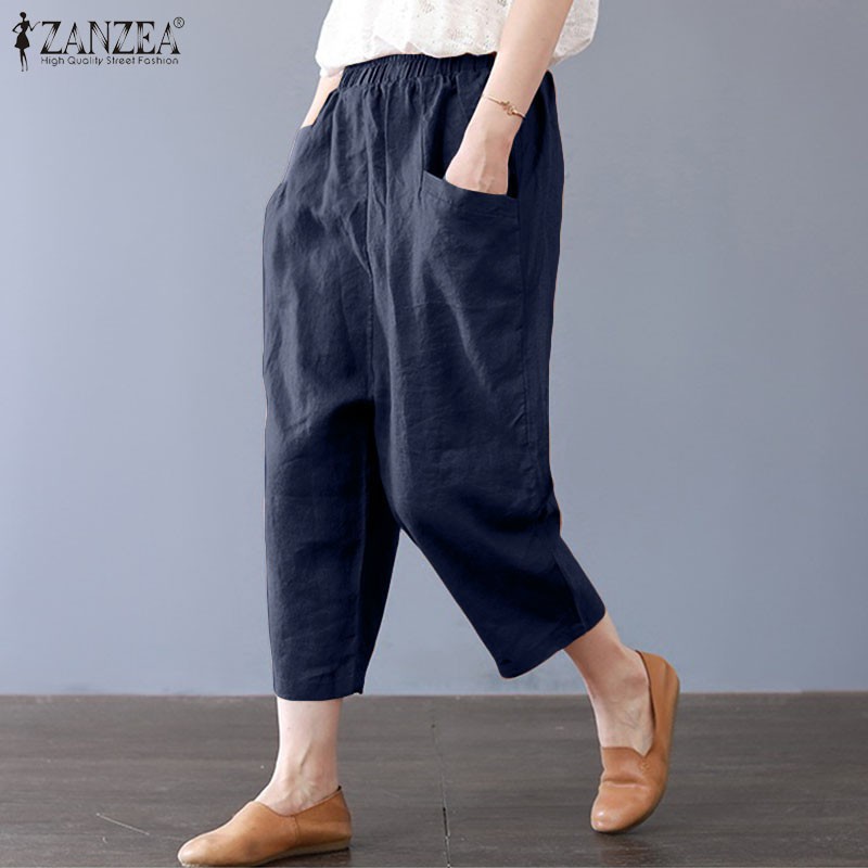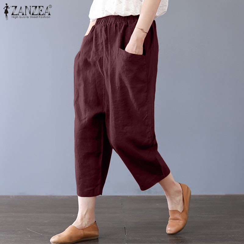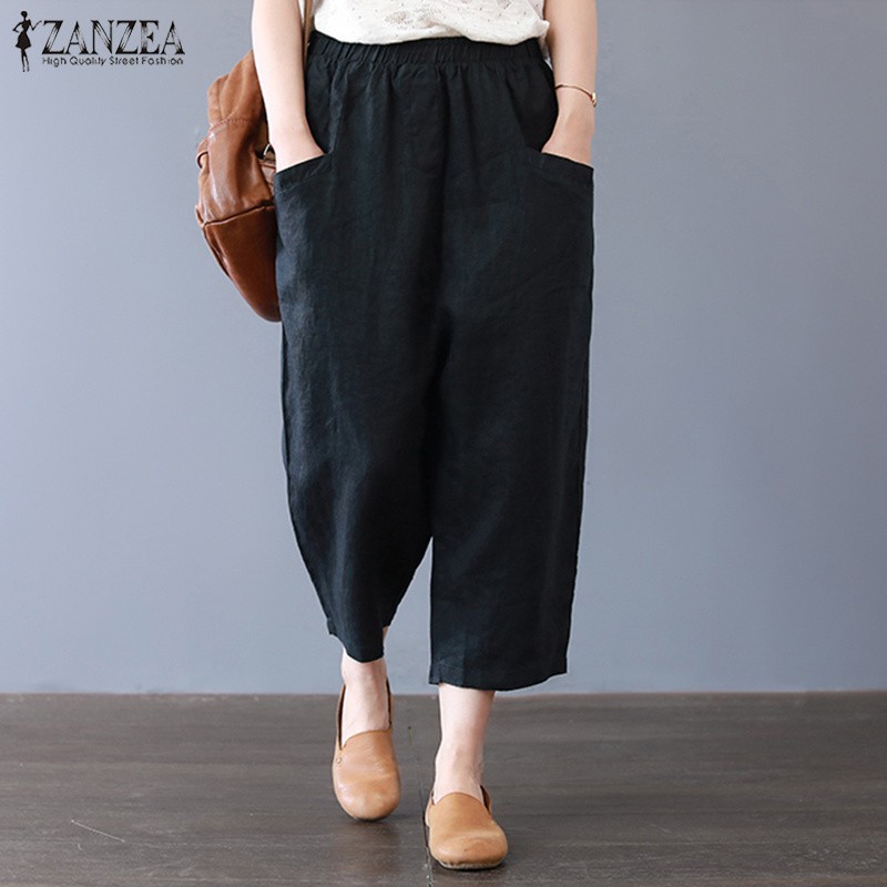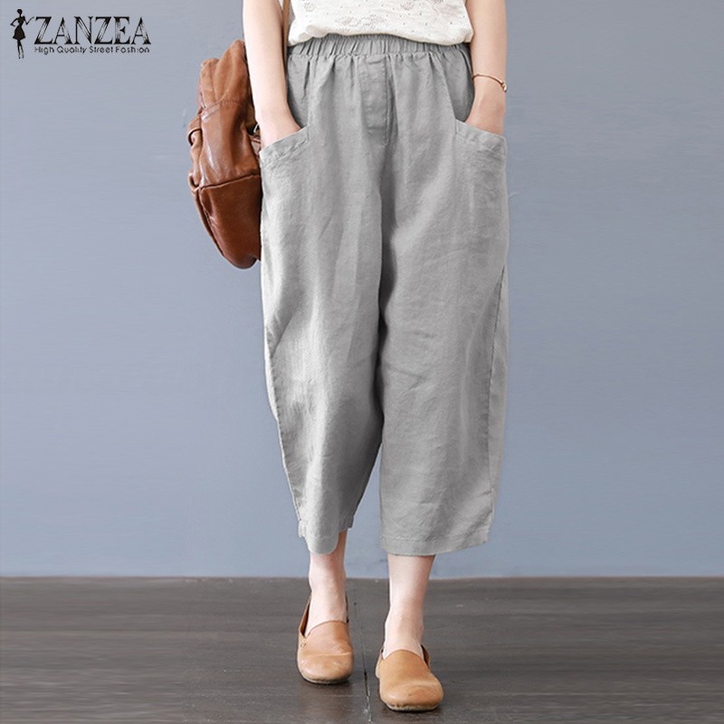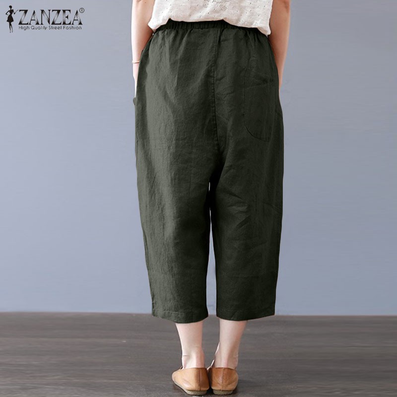 ZANZEA กางเกงลำลองขายาว ทรงหลวม สำหรับผู้หญิง สีพื้น แฟชั่นฤดูร้อน