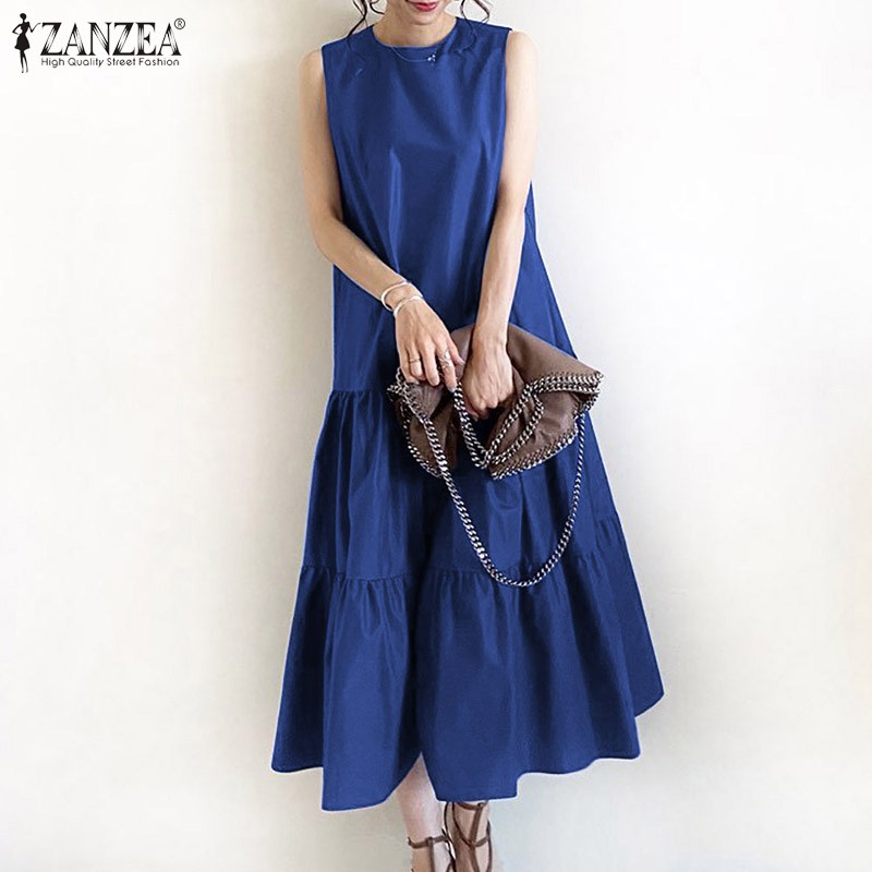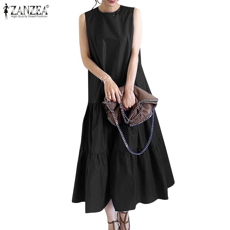 Zanzea ชุดเดรสยาว แขนกุด สไตล์ลำลอง แฟชั่นสำหรับผู้หญิง