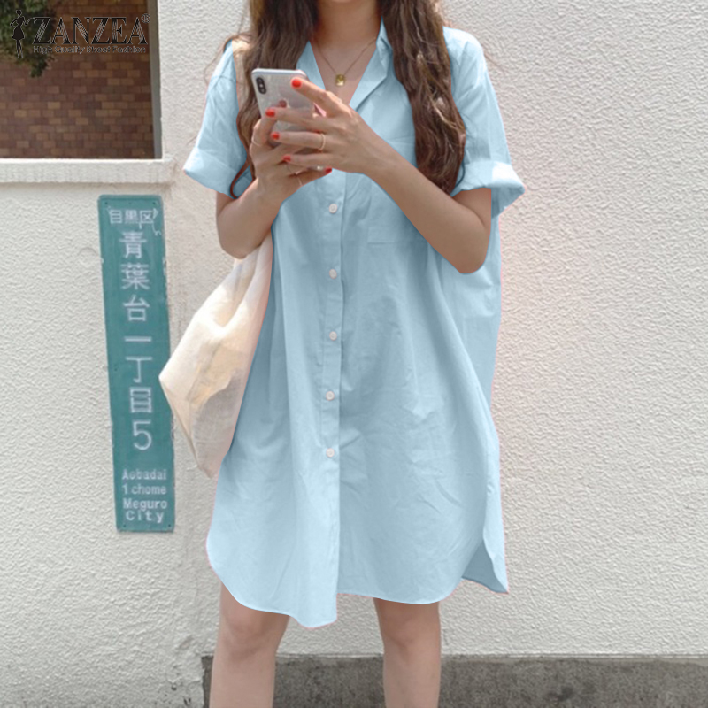 Zanzea ชุดมิดิเดรสลําลอง แขนสั้น สําหรับผู้หญิง