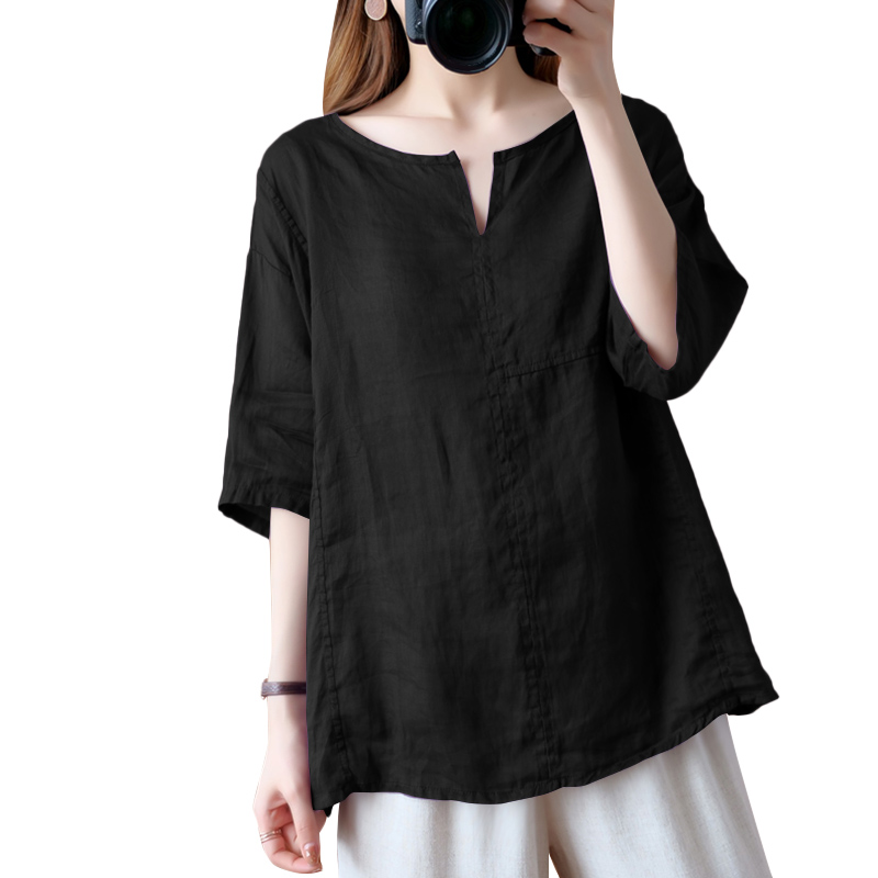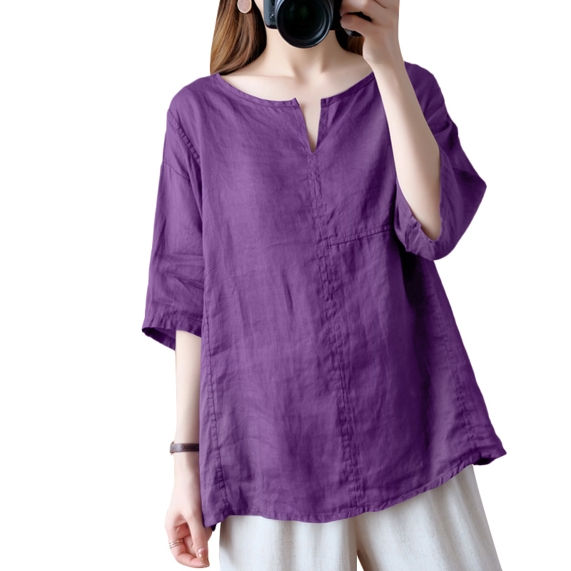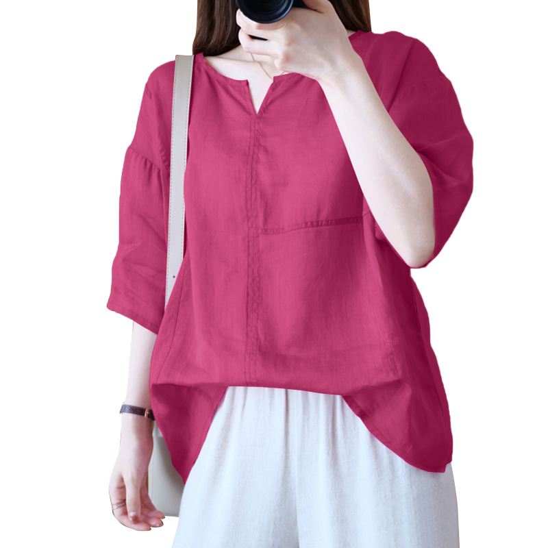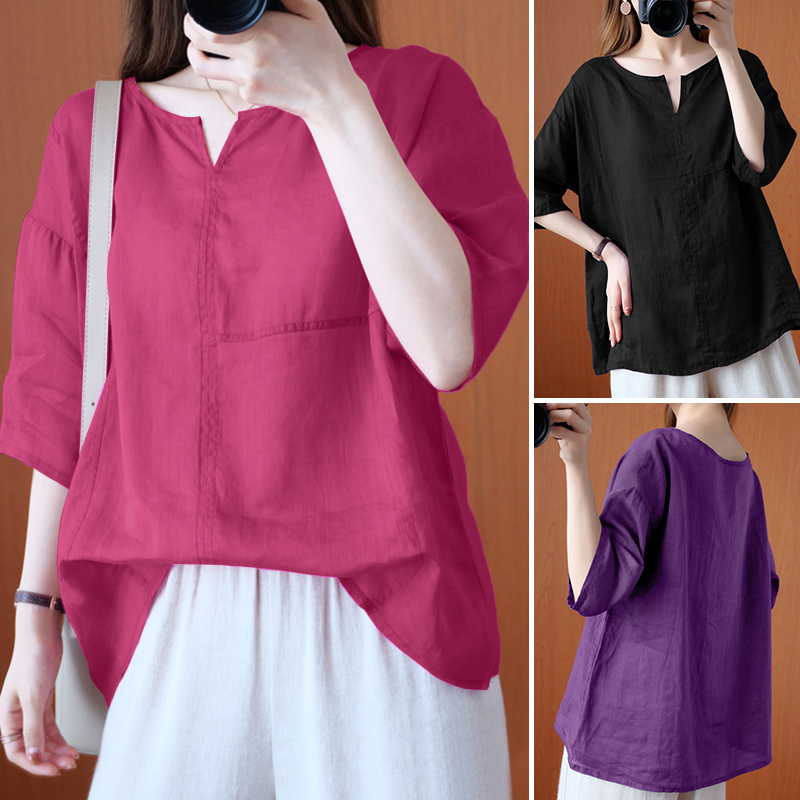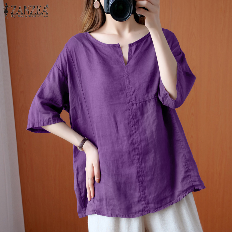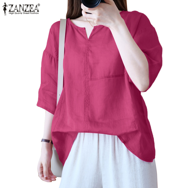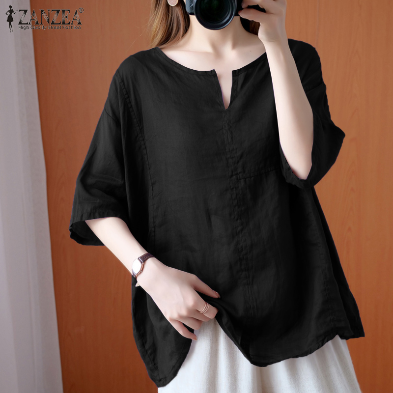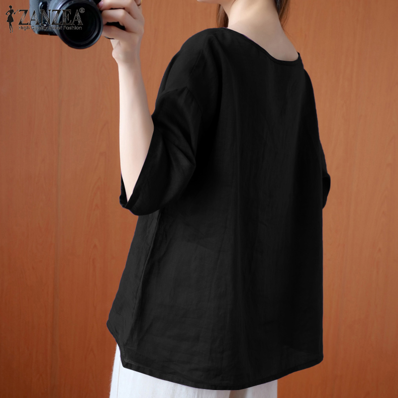Zanzea เสื้อลําลอง แขนยาวครึ่งแขน คอกลม ผ้าฝ้าย สีพื้น ทรงหลวม สำหรับผู้หญิง