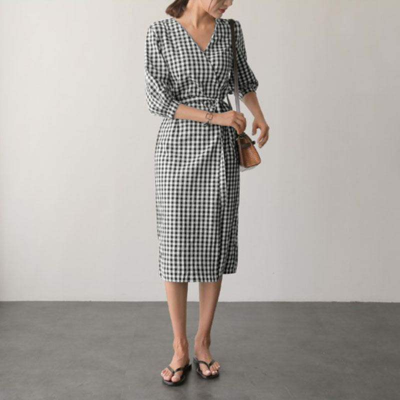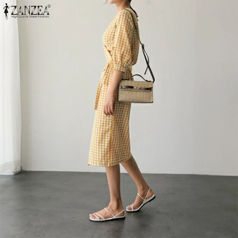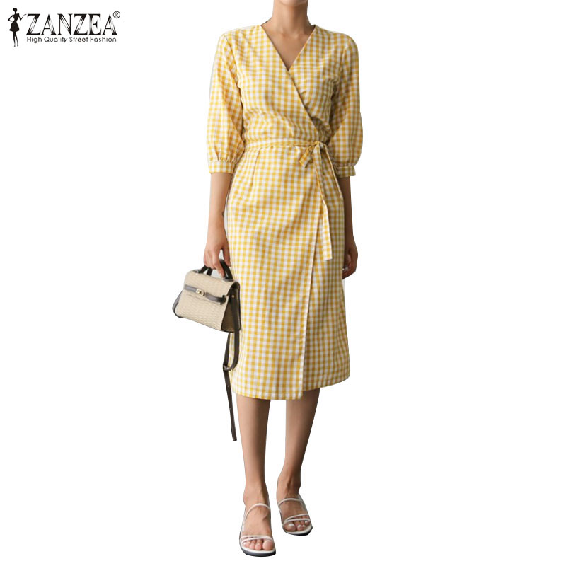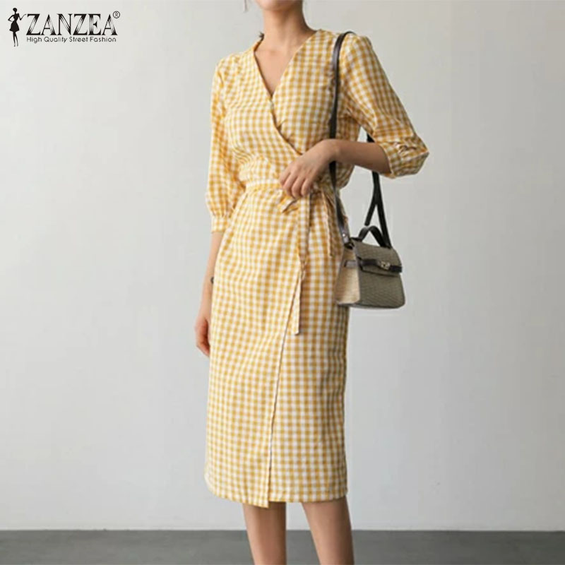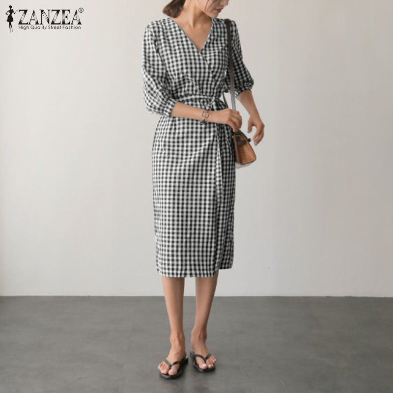 Zanzea ชุดเดรสสําหรับสตรีแขนยาวครึ่งแขนคอวีพิมพ์ลาย