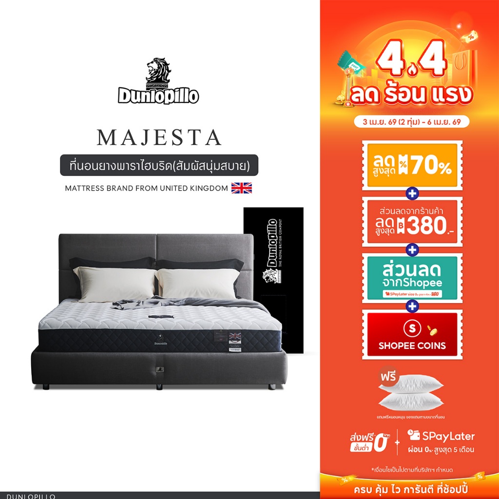 Dunlopillo ที่นอนยางพาราแท้ 100% บรรเทาอาการปวดหลังได้อย่างตรงจุด สัมผัสนุ่มสบาย รุ่น Majesta ส่งฟรี