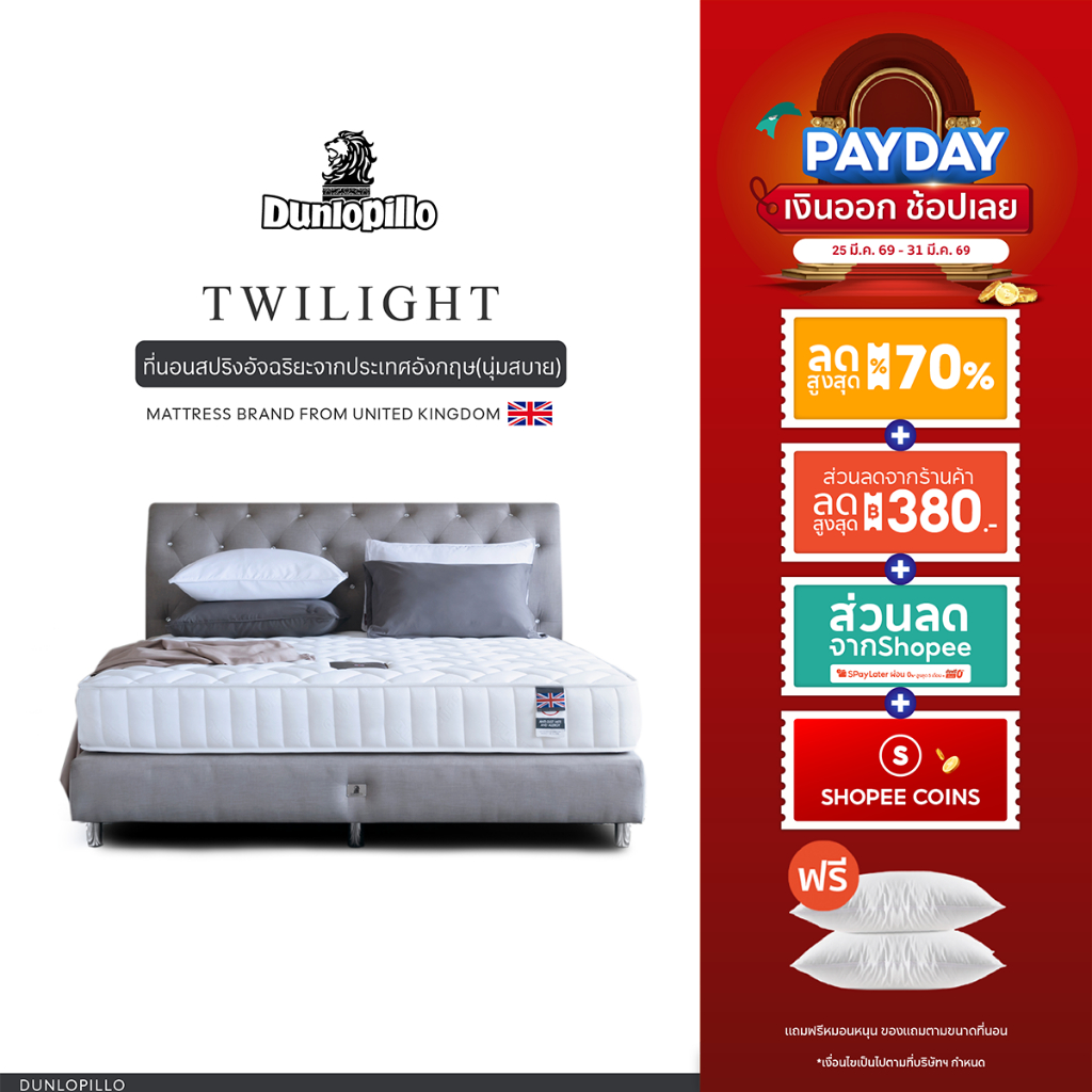 Dunlopillo รุ่น Twilight ที่นอนสปริงอัจฉริยะ แก้ปวดหลัง นวัตกรรมจากประเทศอังกฤษ ส่งฟรี