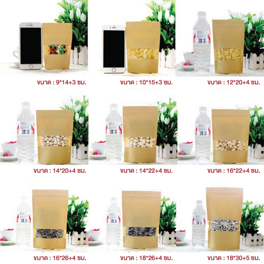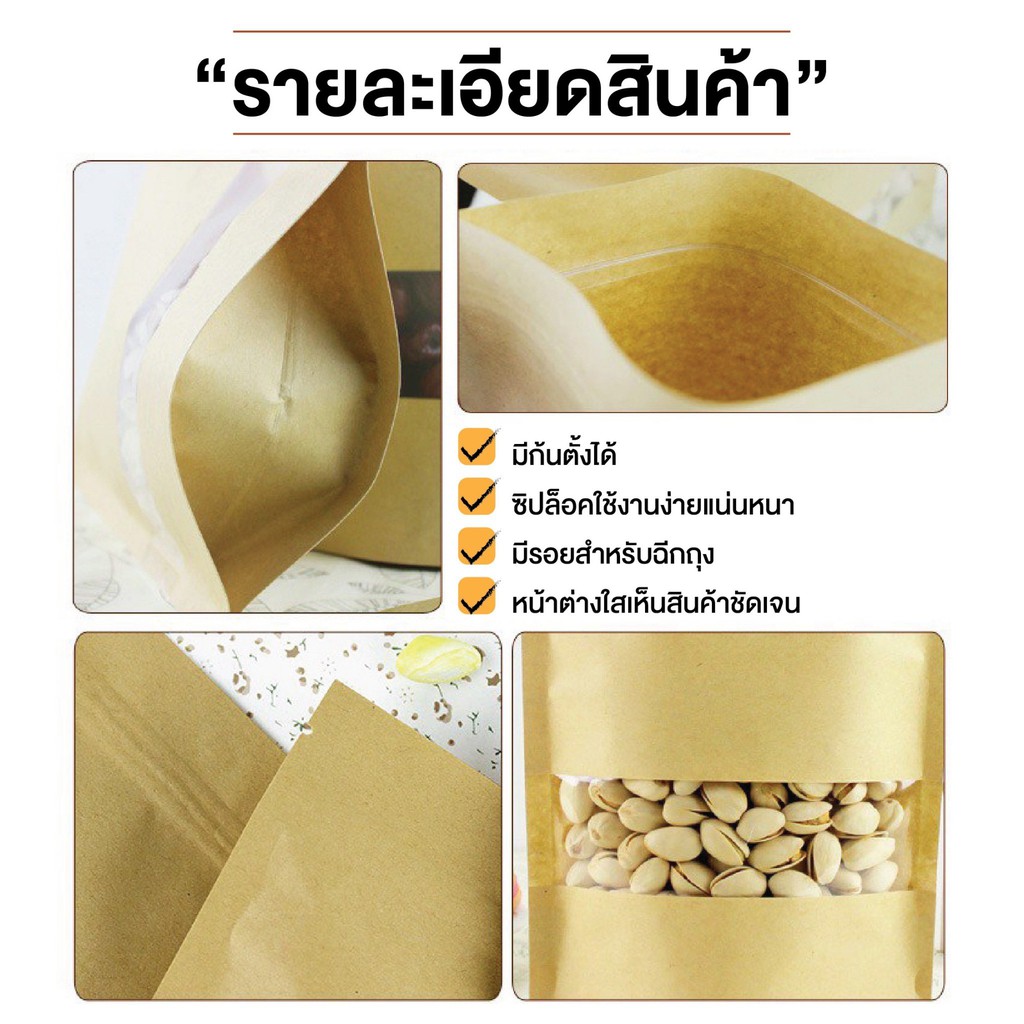 🚚ส่งฟรี ส่งไว🔥ถุงซิปล็อคคราฟท์ เจาะหน้าต่าง (50ใบ) เคลือบกันน้ำมันด้านใน ด้านนอกกระดาษคราฟ