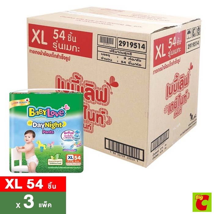 เบบี้เลิฟ เดย์ไนท์ แพ้นท์ กางเกงผ้าอ้อมเด็ก ซูเปอร์จัมโบ้ ขนาด S - XXL X 3 แพ็ค
