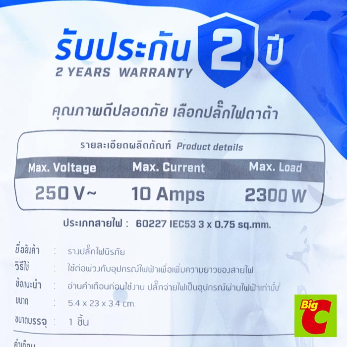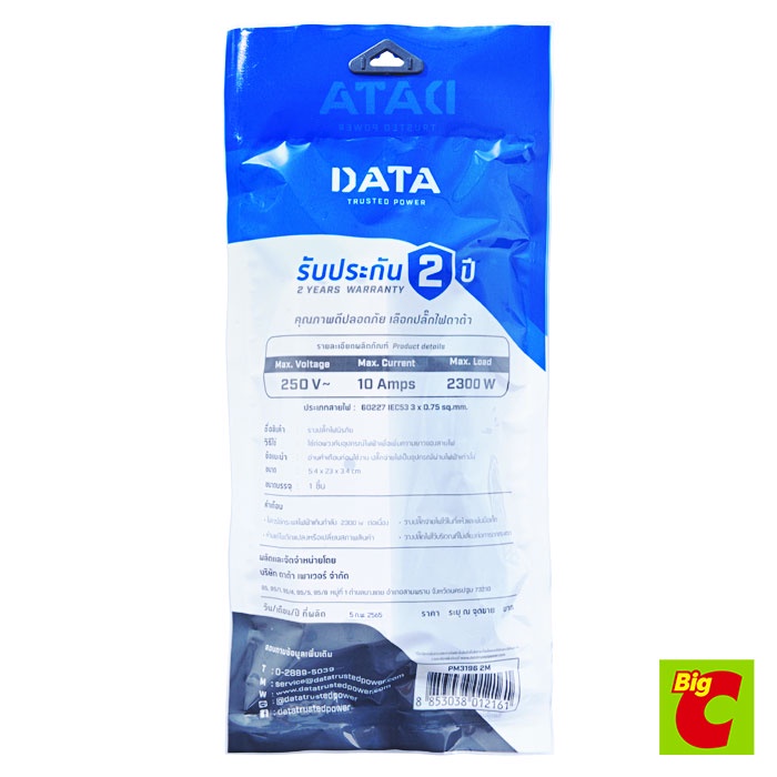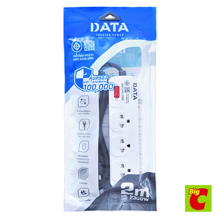 ดาต้า ปลั๊กไฟ 3 ช่อง 1 สวิตช์ 2 ม. สีขาว