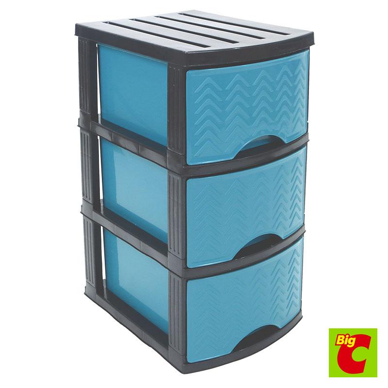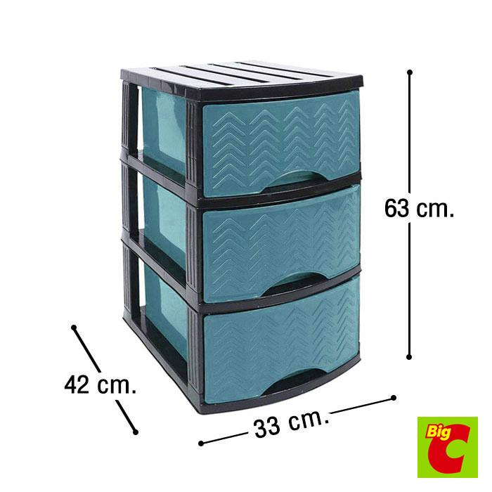 Besico by Big C เบสิโค ตู้ 3 ชั้น ลายหวายโครงดำ สีเขียว