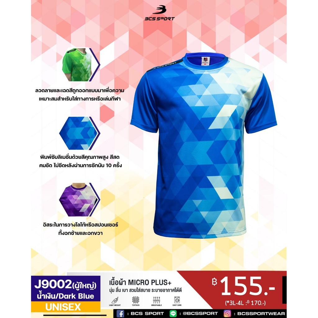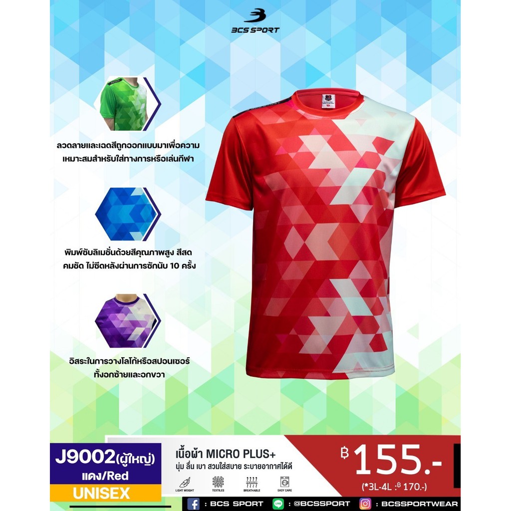 BCS sport(บีซีเอสสปอร์ต)เสื้อกีฬา เสื้อวิ่ง รหัสสินค้า J9002 ผ้า MICRO PLUS+ ชุดสีที่2 Size SS-8L(36"-56")