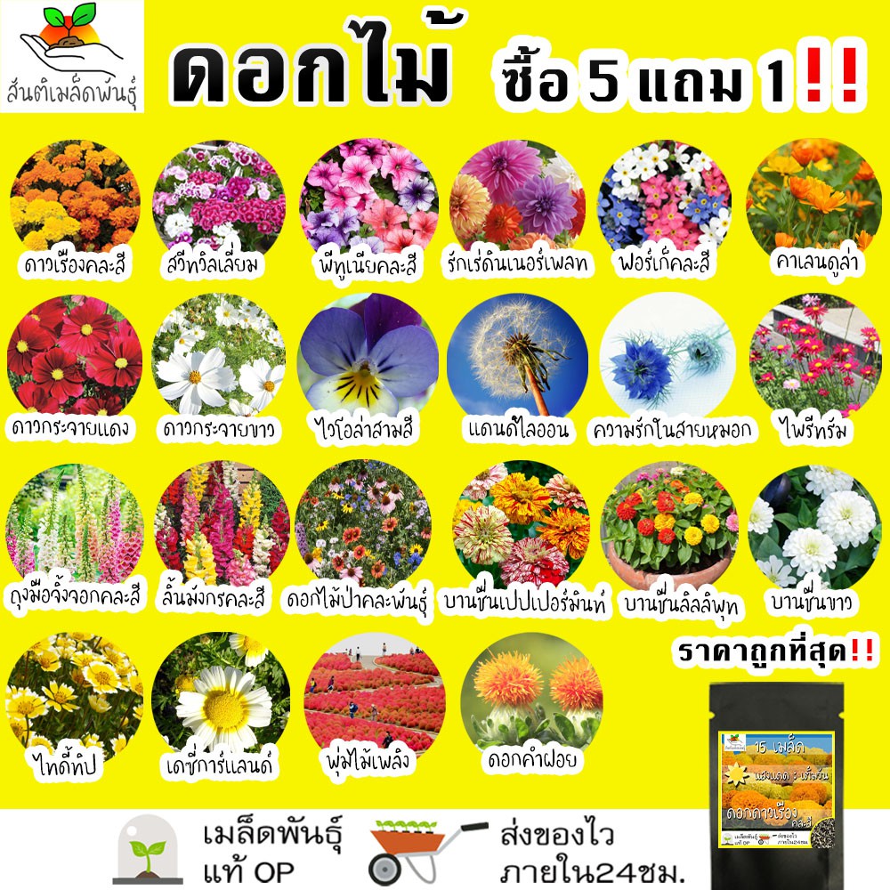 เมล็ดพันธุ์ รวม ชุด ดอกไม้ ปลูกง่าย โตไว เดซี่ขาว/ทานตะวันแคระ/คาโมมายล์/ลาเวนเดอร์/กุหลาบเลื้อย/ฟอร์เก็ตมีน็อต ขายดี