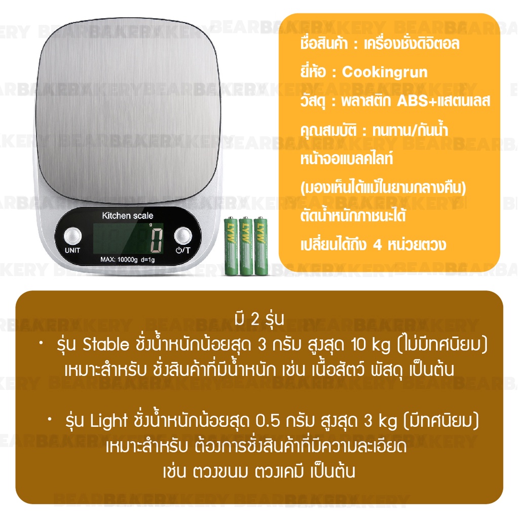 เครื่องชั่งดิจิตอล Bearbakery เครื่องชั่งน้ำหนัก เครื่องชั่งอาหาร ตาชั่งดิจิตอล COR1