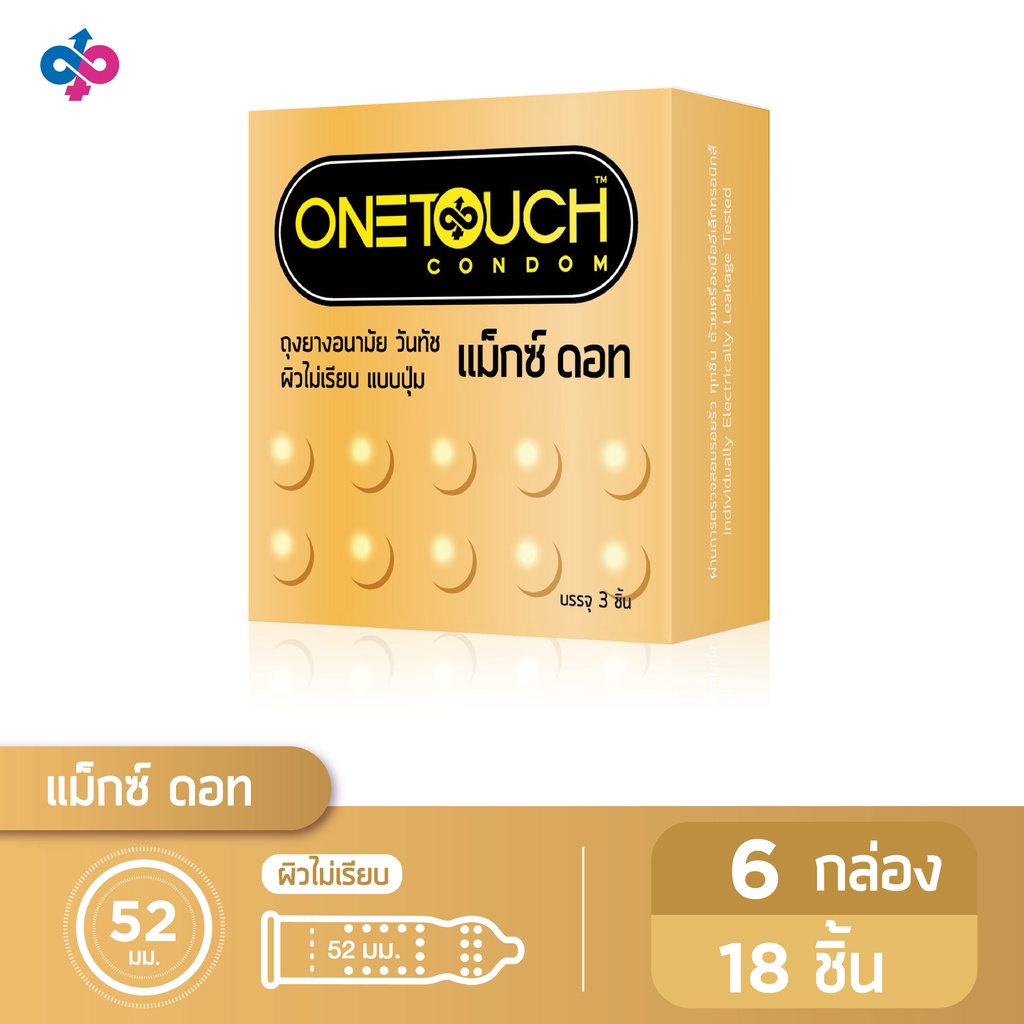 Onetouch ถุงยางอนามัย ขนาด 52 mm. รุ่น แม็กซ์ดอท 6 กล่อง 18 ชิ้น