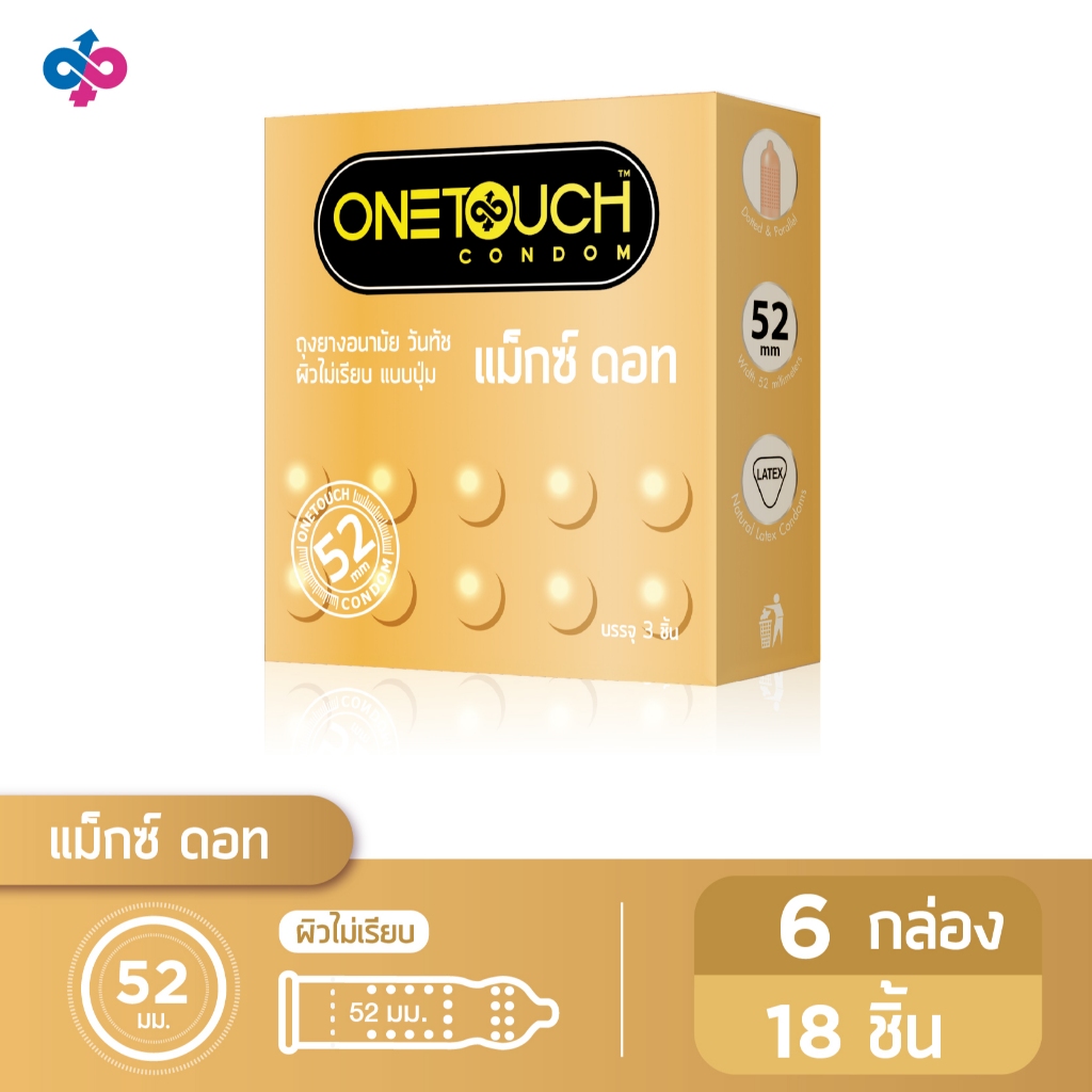 Onetouch ถุงยางอนามัย ขนาด 52 mm. รุ่น แม็กซ์ดอท 6 กล่อง 18 ช ิ้น