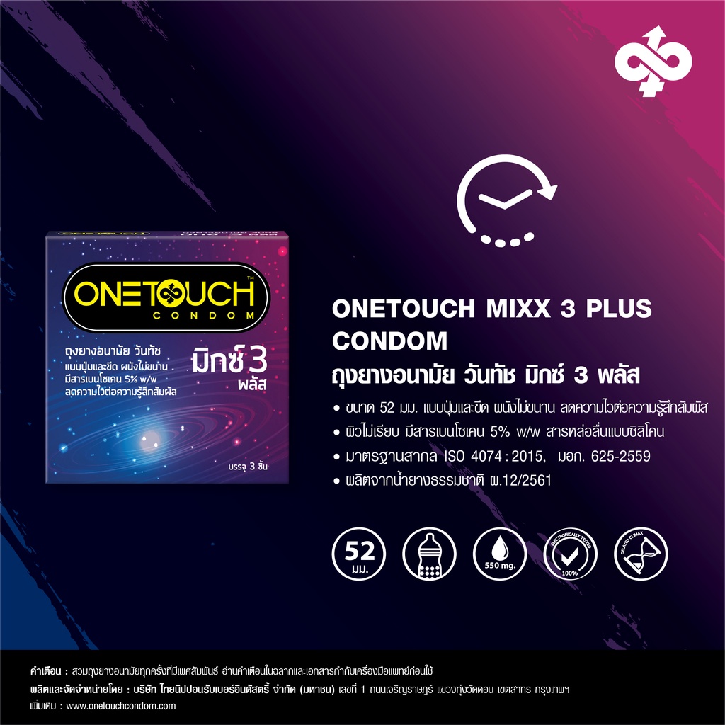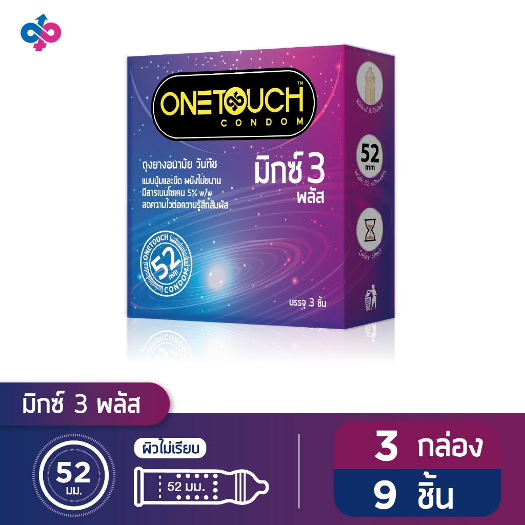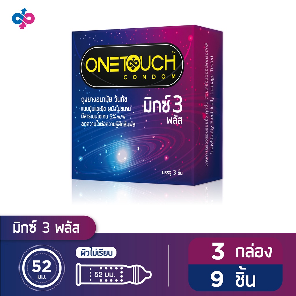 Onetouch ถุงยางอนามัย ขนาด 52 mm. รุ่น มิกซ์ 3 พลัส 3 กล่อง 9 ชิ้น