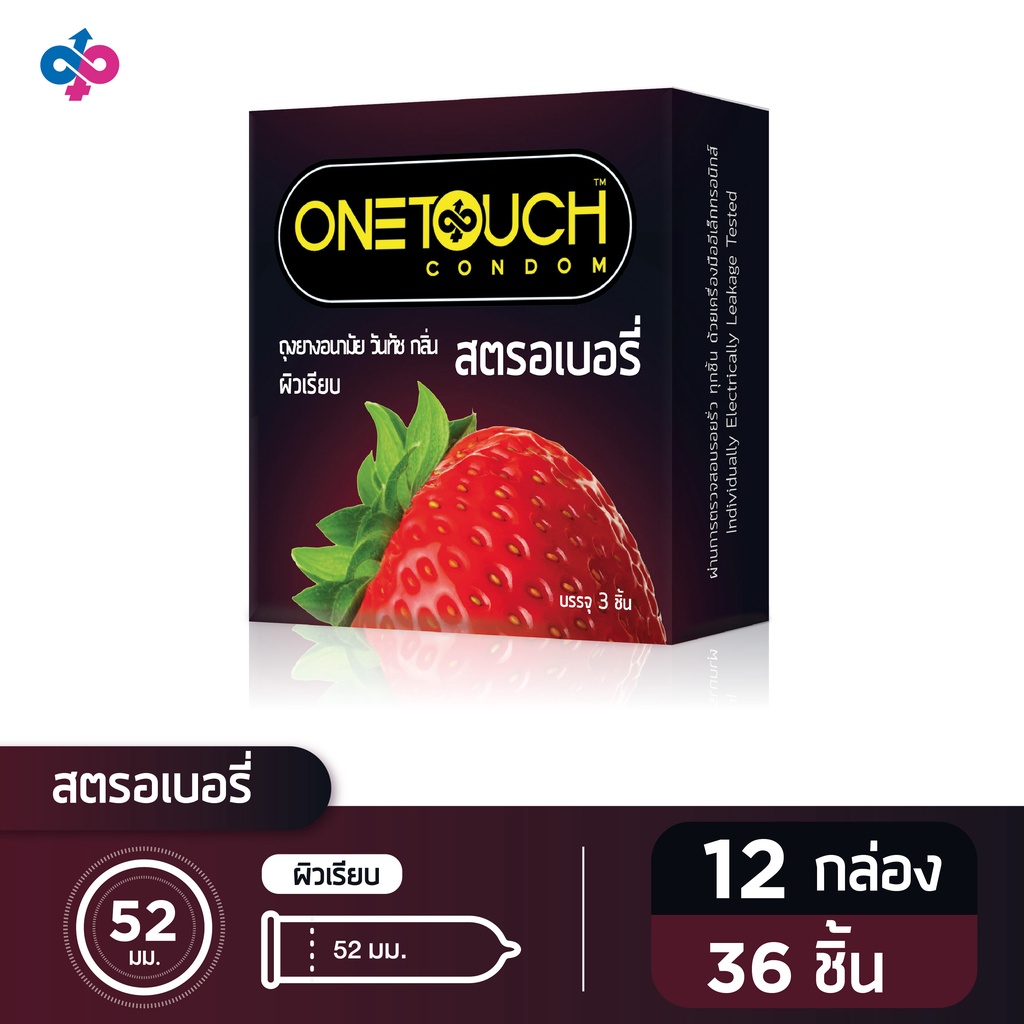 Onetouch ถุงยางอนามัย ขนาด 52 mm. รุ่น สตรอเบอร์รี่ 12 กล่อง 36 ชิ้น