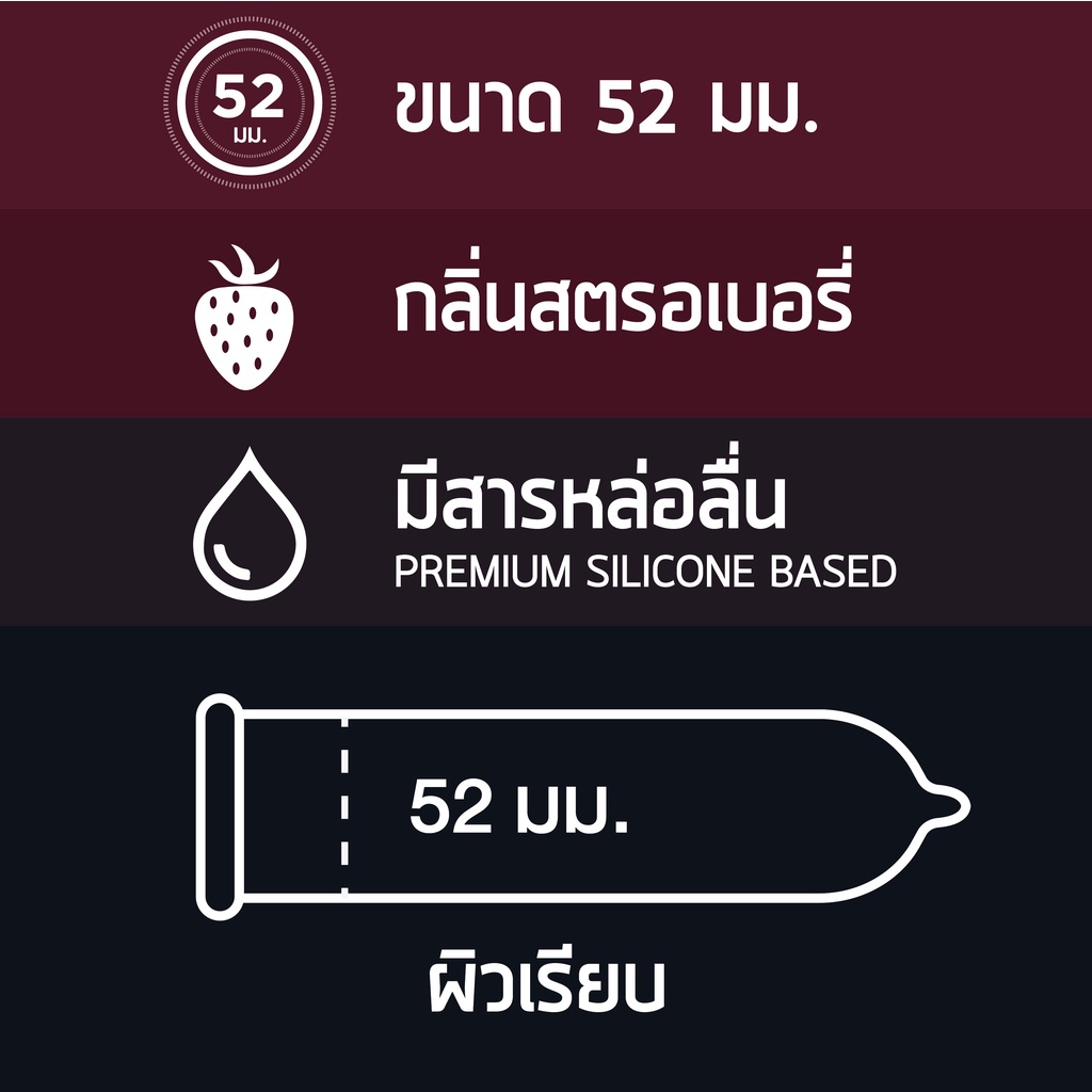 Onetouch ถุงยางอนามัย ขนาด 52 mm. รุ่น สตรอเบอร์รี่ Family Pack 1 กล่อง 12 ชิ้น