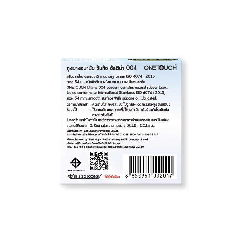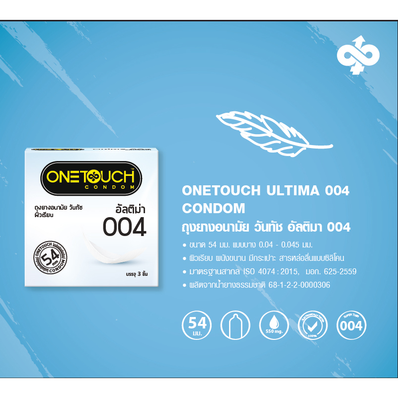 Onetouch ถุงยางอนามัย ขนาด 54 มม. บาง 004 รุ่น อัลติม่า 6 กล่อง 18 ชิ้น