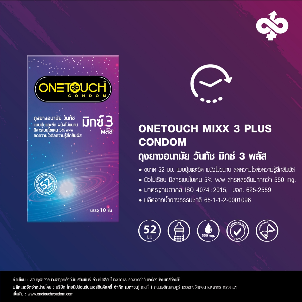 Onetouch ถุงยางอนามัย ขนาด 52 mm. รุ่น มิกซ์ 3 พลัส Family Pack 1 กล่อง 10 ชิ้น