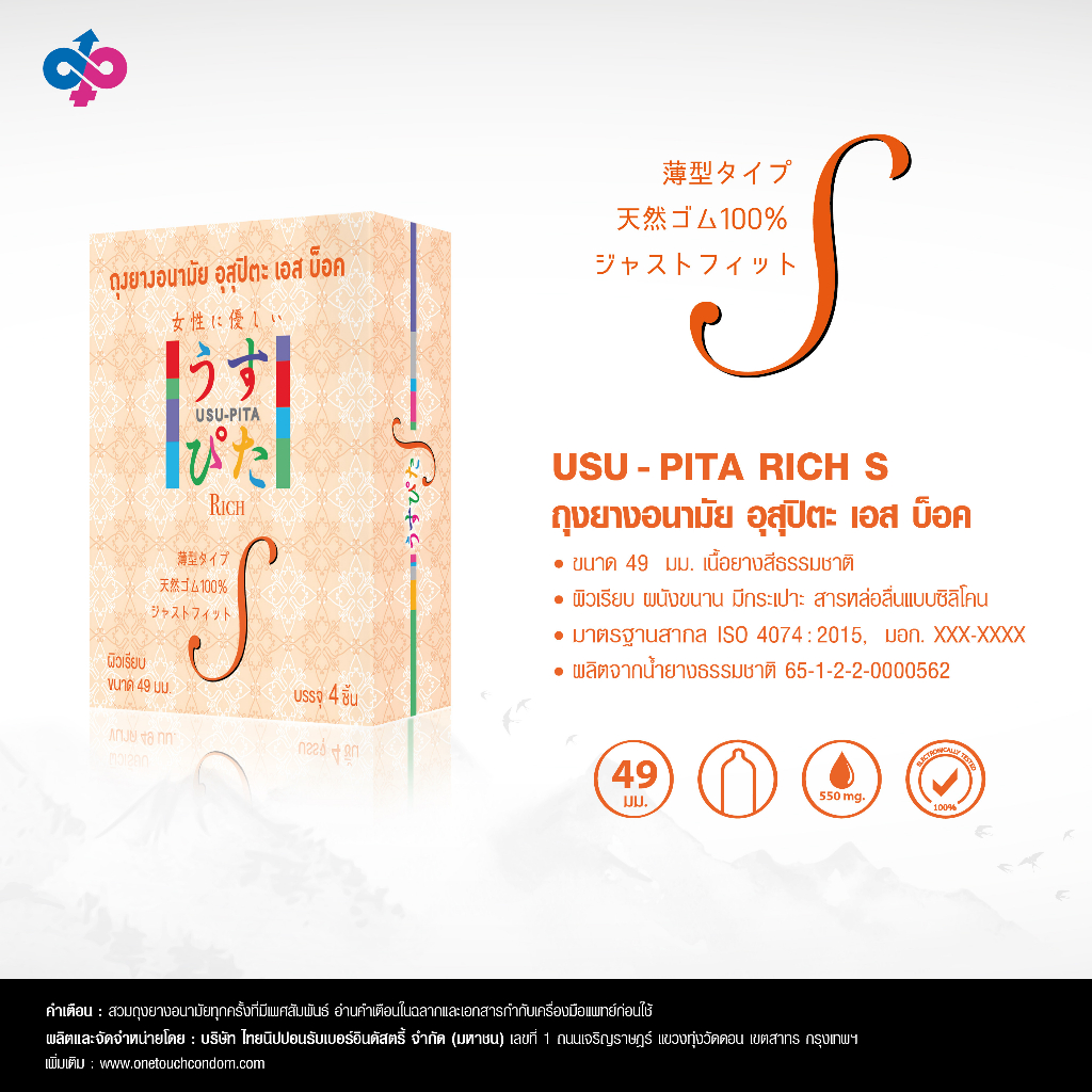 ถุงยางอนามัยอุสุปิตะ เอส บ็อค (USU-PITA S BOX Condom) ผิวเรียบ ขนาด 49 มม. (1 กล่องบรรจุ 4 ชิ้น)