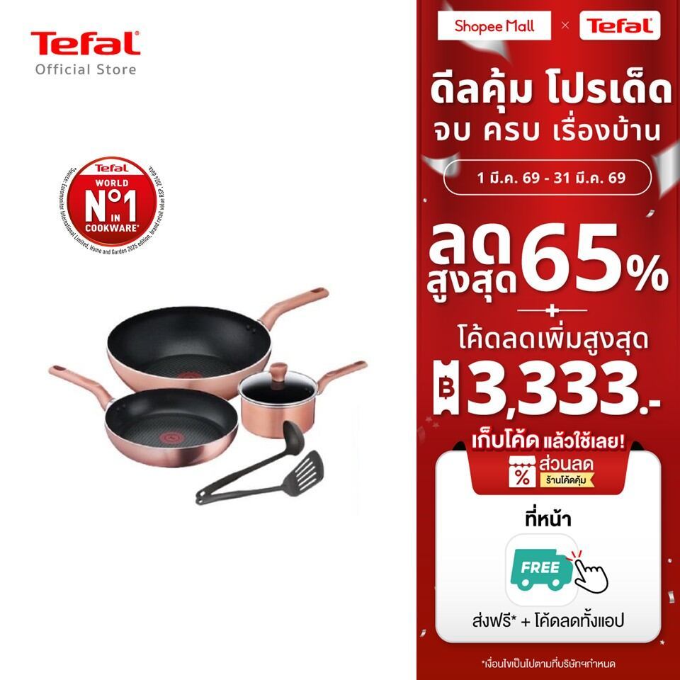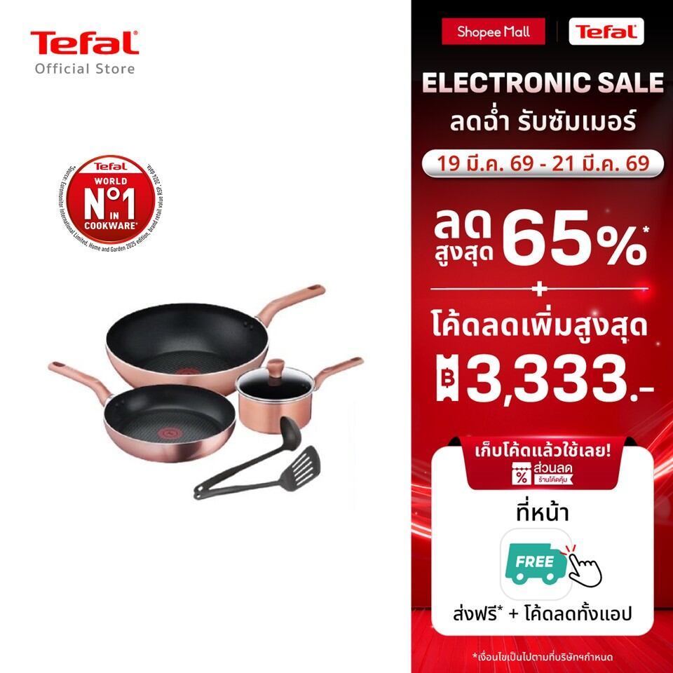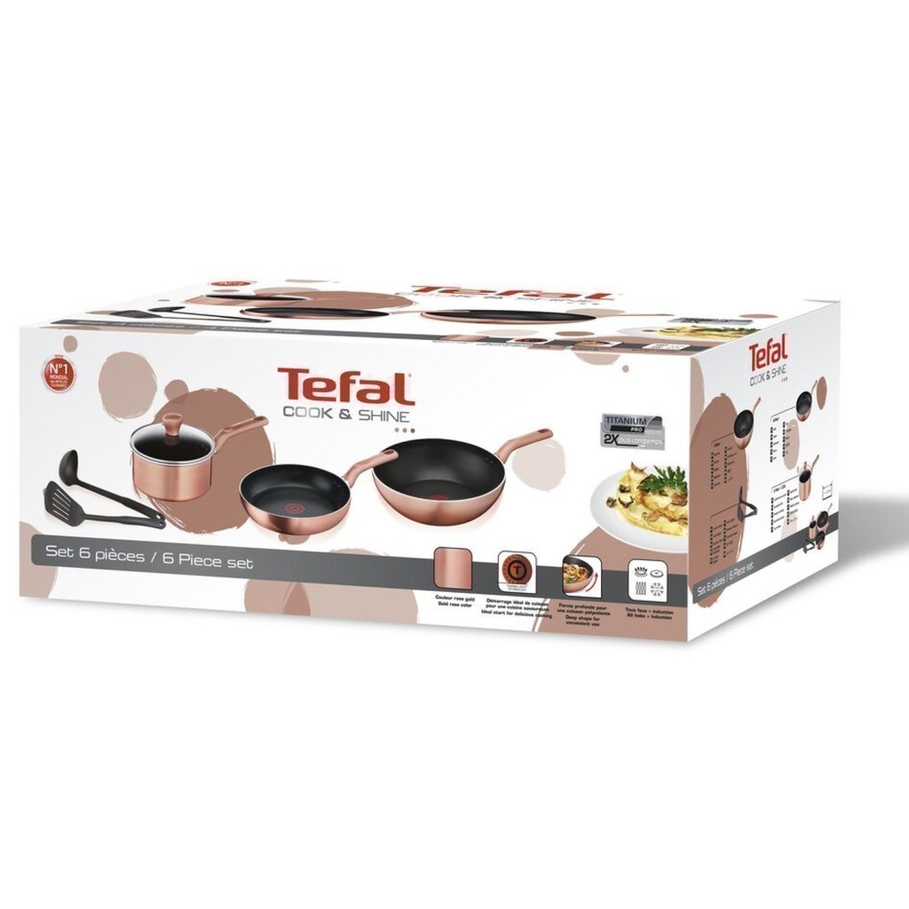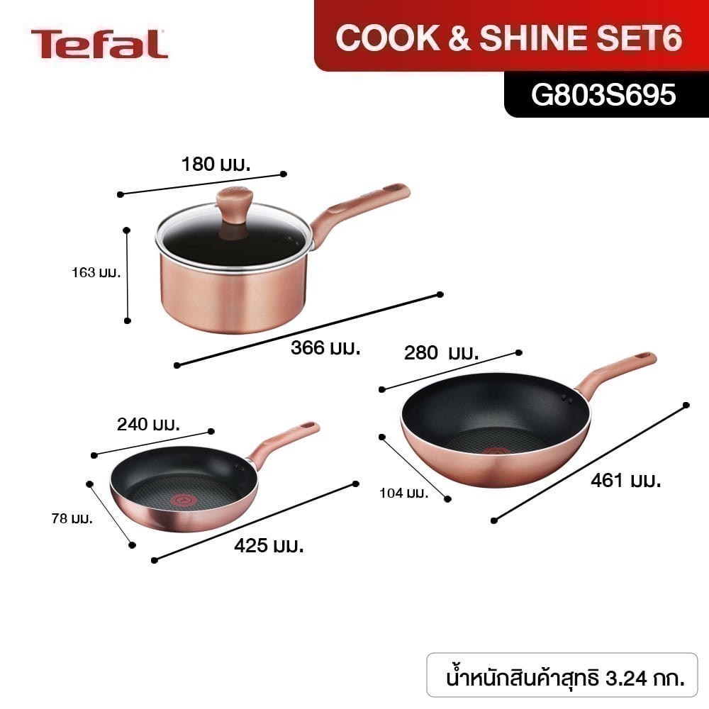 Tefal เซ็ตเครื่องครัว ชุดเครื่องครัว ชุดกระทะ COOK & SHINE 6 ชิ้น รุ่น G803S695 - Rose Gold