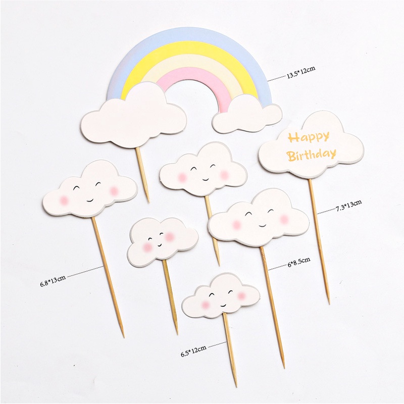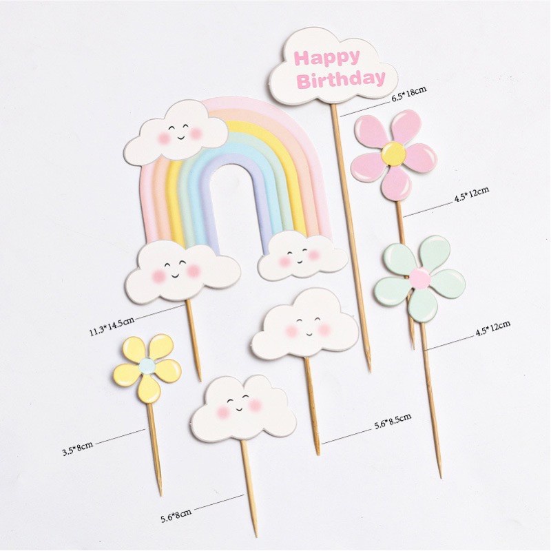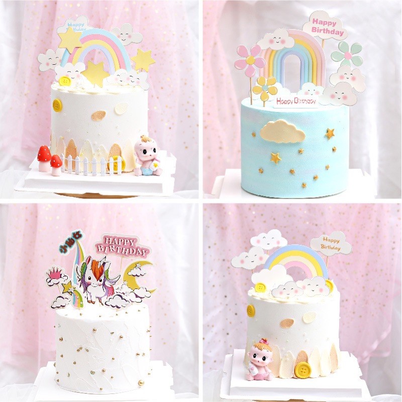 ป้ายธีมเมฆ สายรุ้ง สําหรับตกแต่งเค้กวันเกิดเด็ก