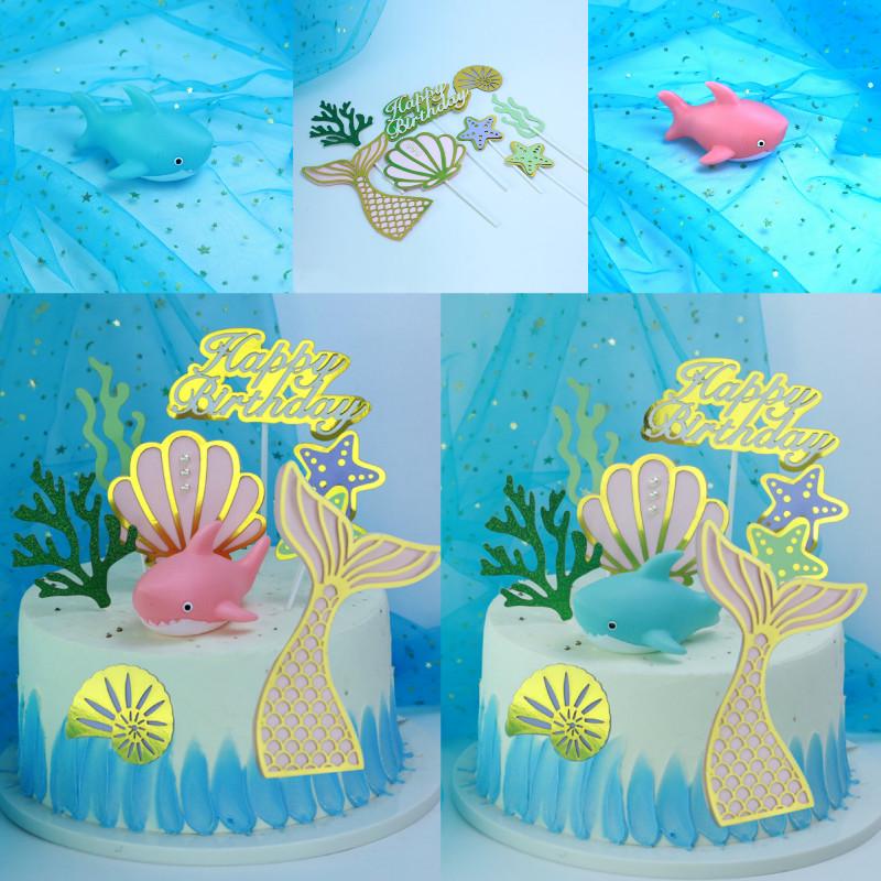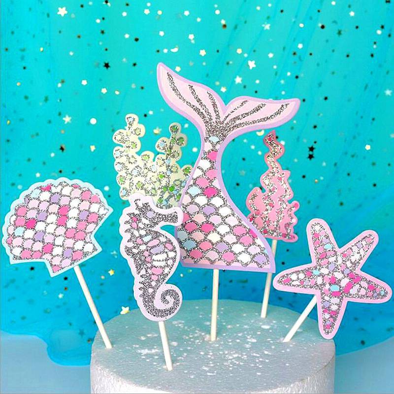 ป้ายกระดาษ ลายหางเงือก ปลาดาว ม้าน้ำ สำหรับตกแต่งเค้ก