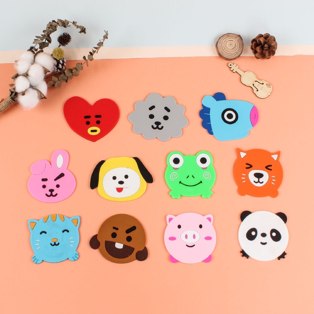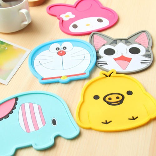 แผ่นรองแก้ว ซิลิโคน ฉนวนกันความร้อน ลายการ์ตูน 1 ชิ้น
