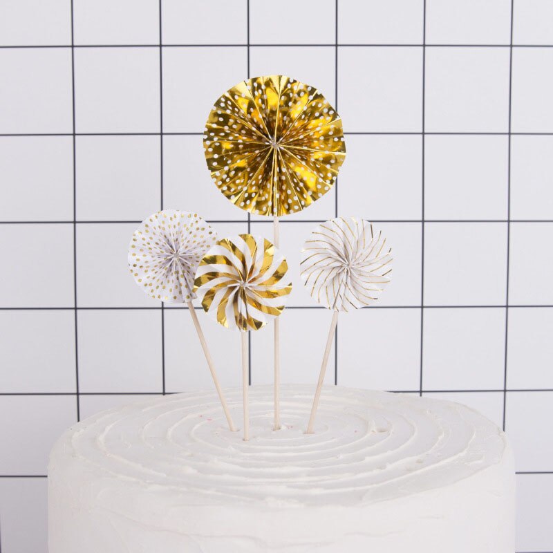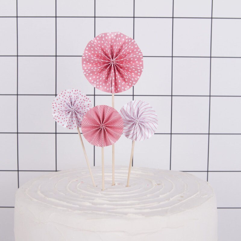 ท็อปเปอร์กระดาษ รูปทรงใบพัด อุปกรณ์สําหรับตกแต่งเค้ก 4 ชิ้น