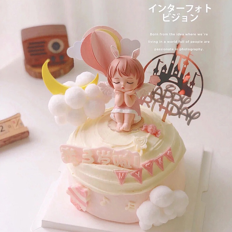 ป้ายธง Anne Birthday สีชมพูสําหรับตกแต่งเค้กวันเกิด