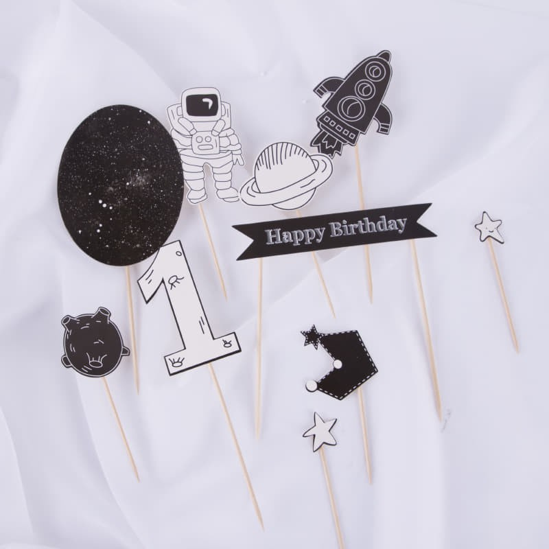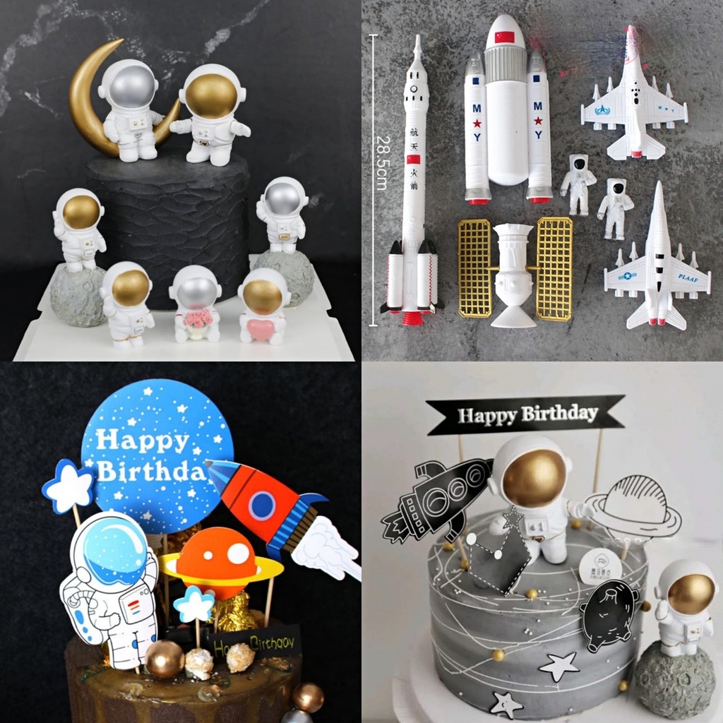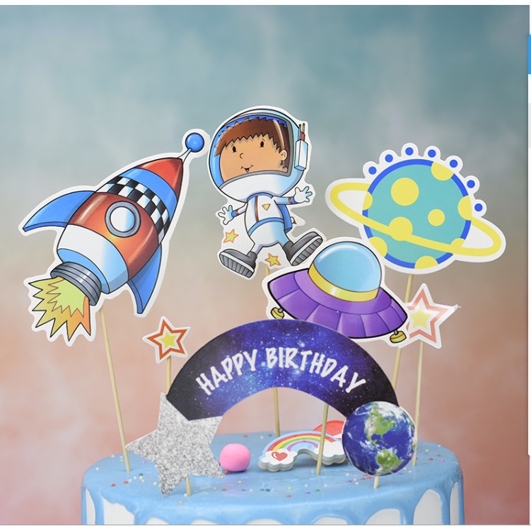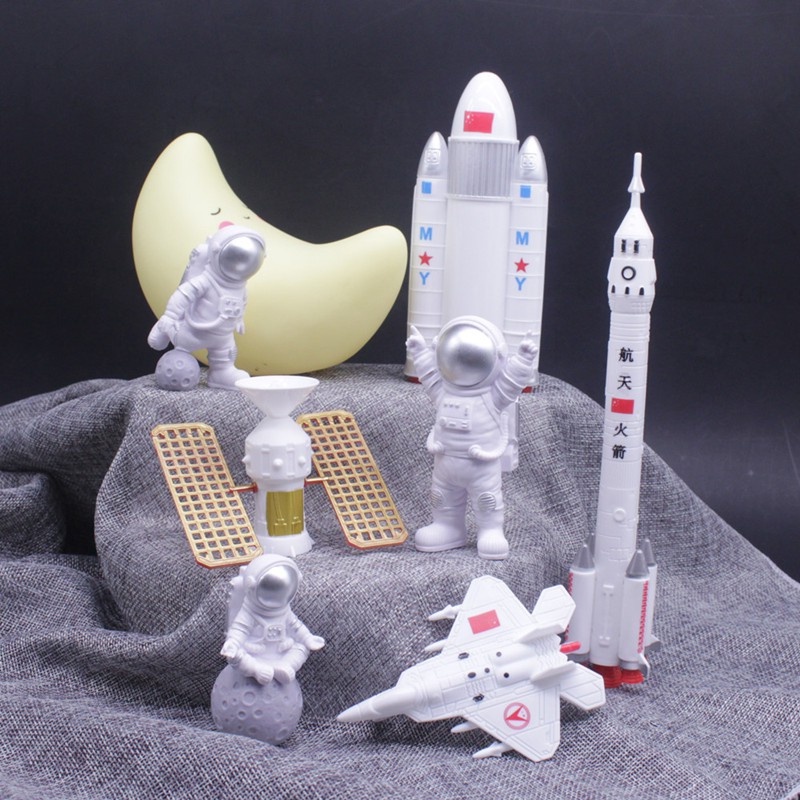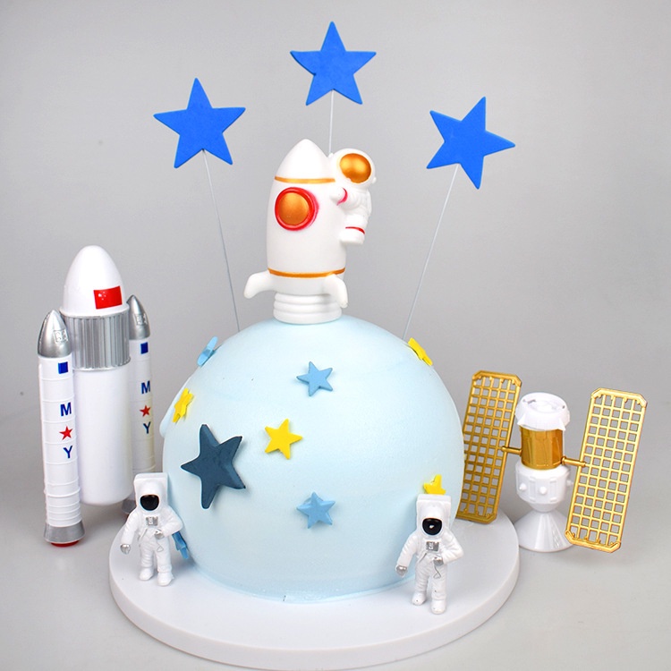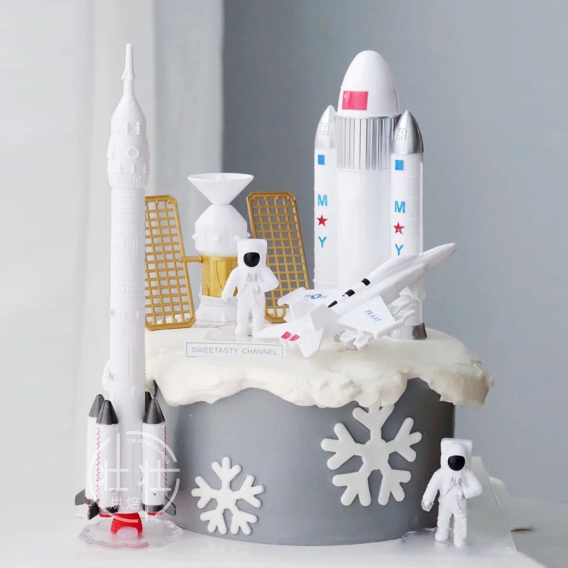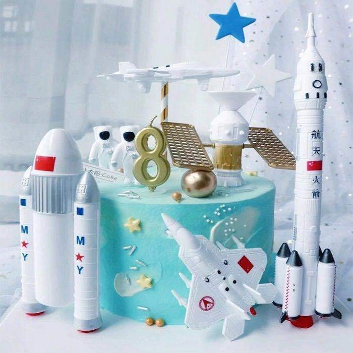 ของเล่นโมเดลหุ่นจรวดดาวอวกาศ นักบินอวกาศ กาแล็กซี่ สําหรับตกแต่งเค้กวันเกิด 7ชิ้น/ชุด