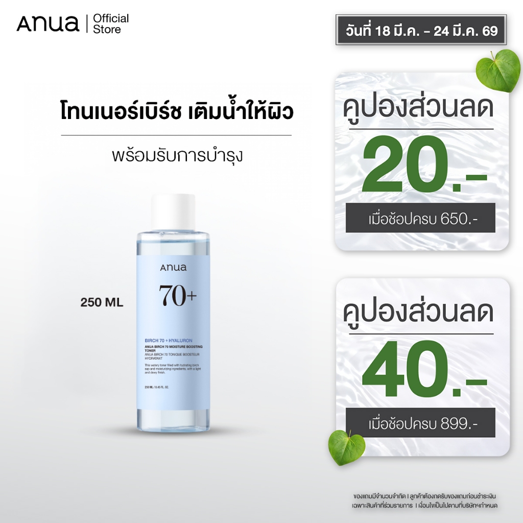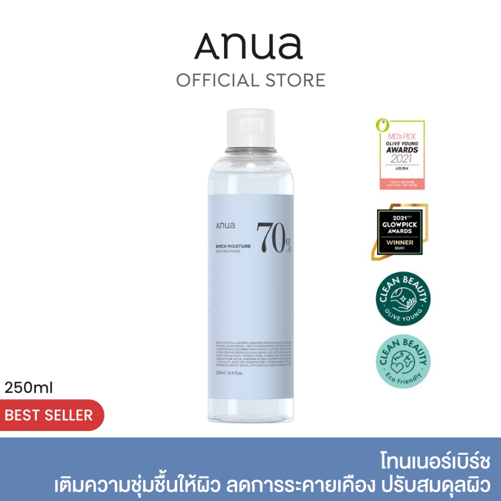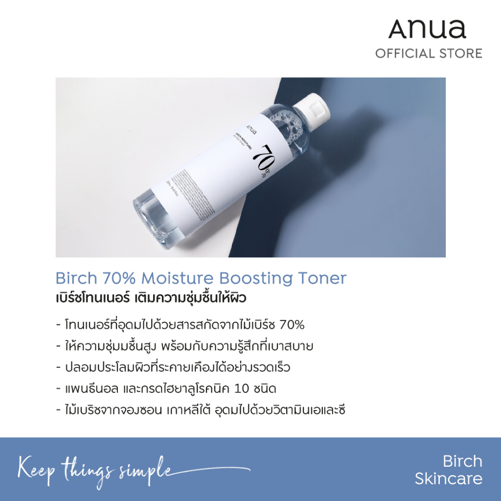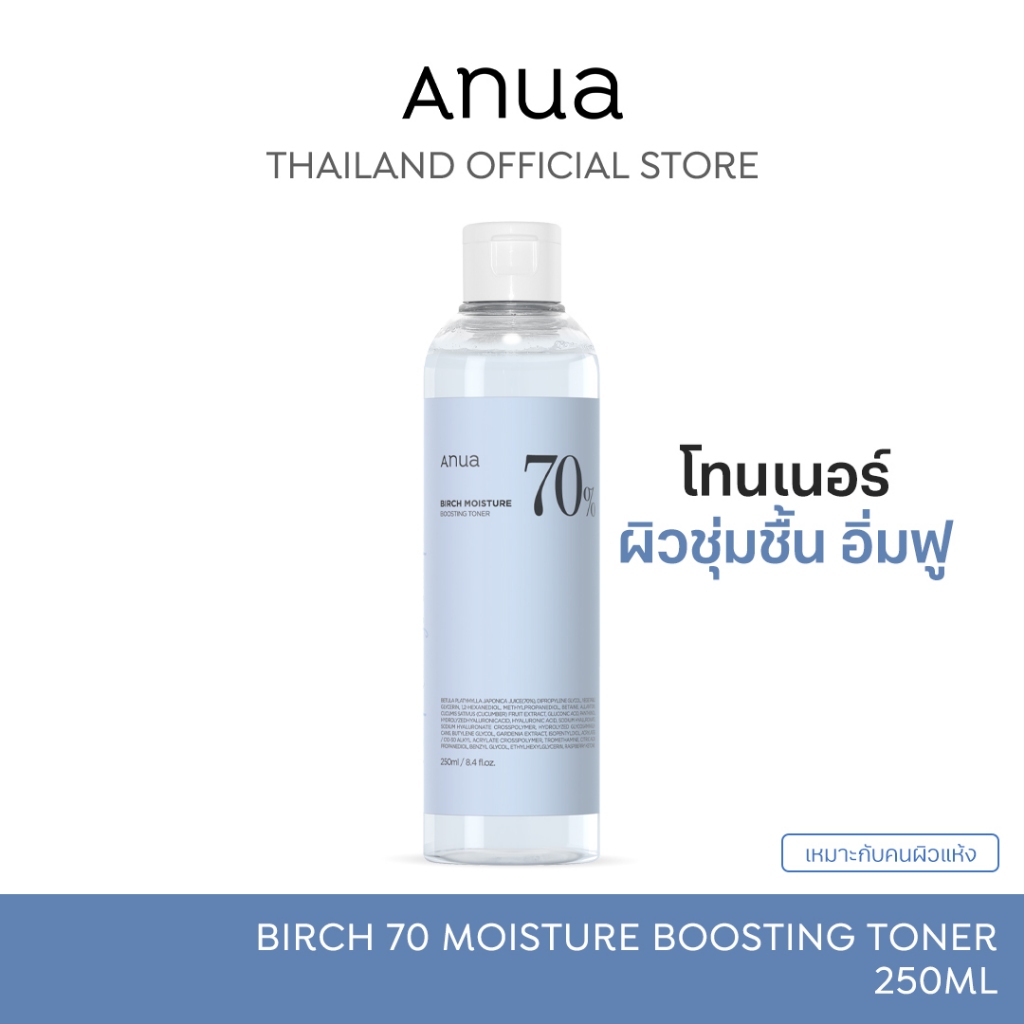 Anua Birch 70% Moisture Boosting Toner อานัว โทนเนอร์เบิร์ช กู้ผิวขาดน้ำ เติมความชุ่มชื้น ผิวอิ่มฟู ดูสุขภาพดี 250 ml.