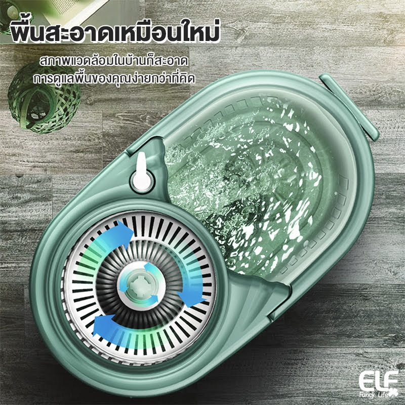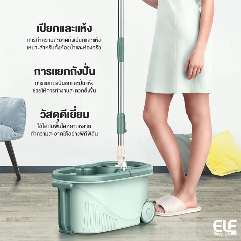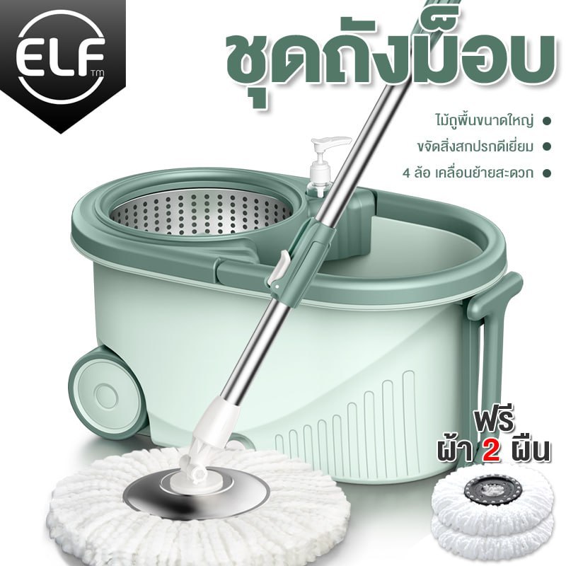 [สินค้าขายดี] ELF ไม้ถูพื้นถังปั่น ผ้า 2 ผืน มีล้อ แถมขวดปั้ม ไม้ถูพื้น ชุดถังปั่น ไม้ม็อบ ม็อบถูพื้น Spin Mop 4084