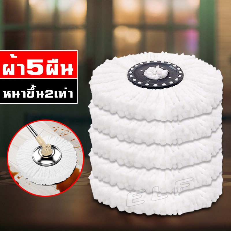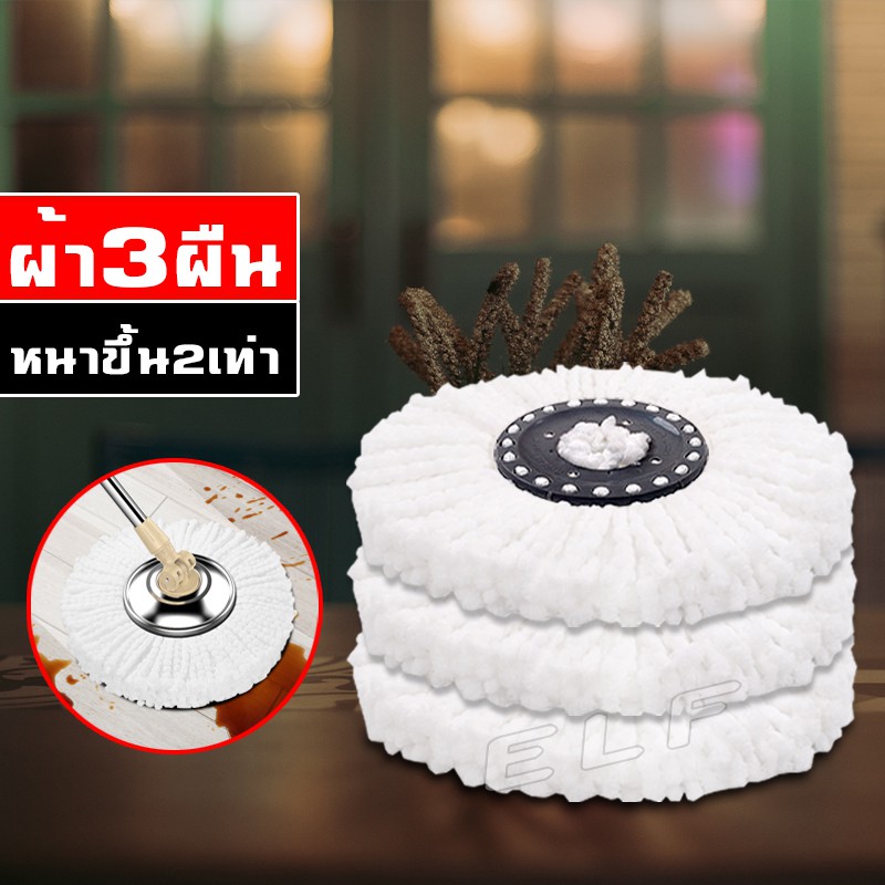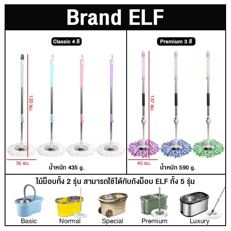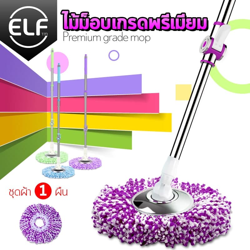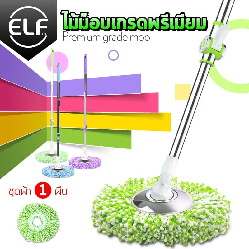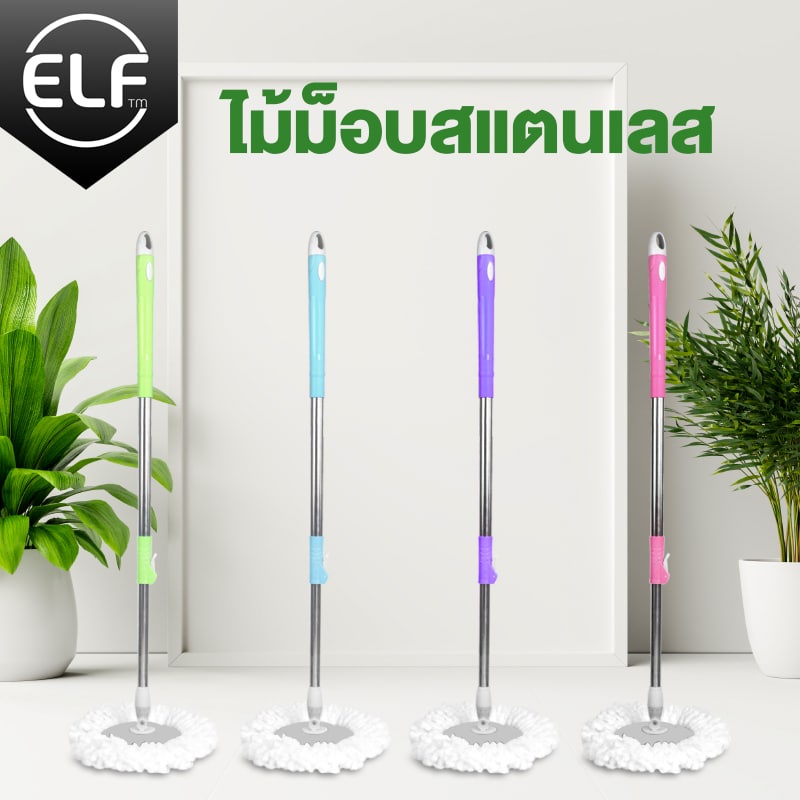 ELF ไม้ถูพื้น พร้อมผ้า 1 และ 2 ผืน ไม้ถูพื้นหมุนได้ 360 องศา ไม้ถูพื้นสแตนเลส ไม้ม็อบ รุ่น 4998