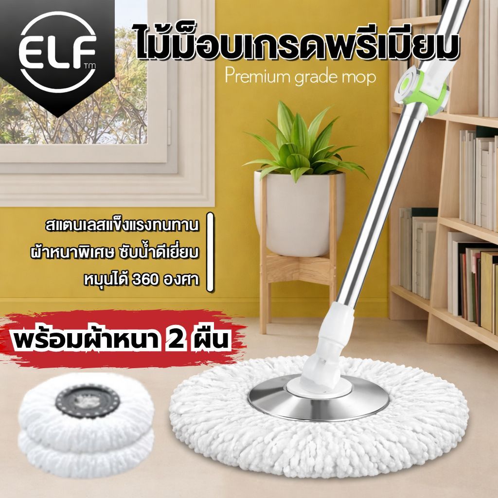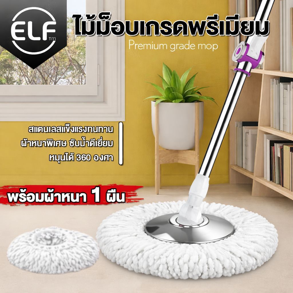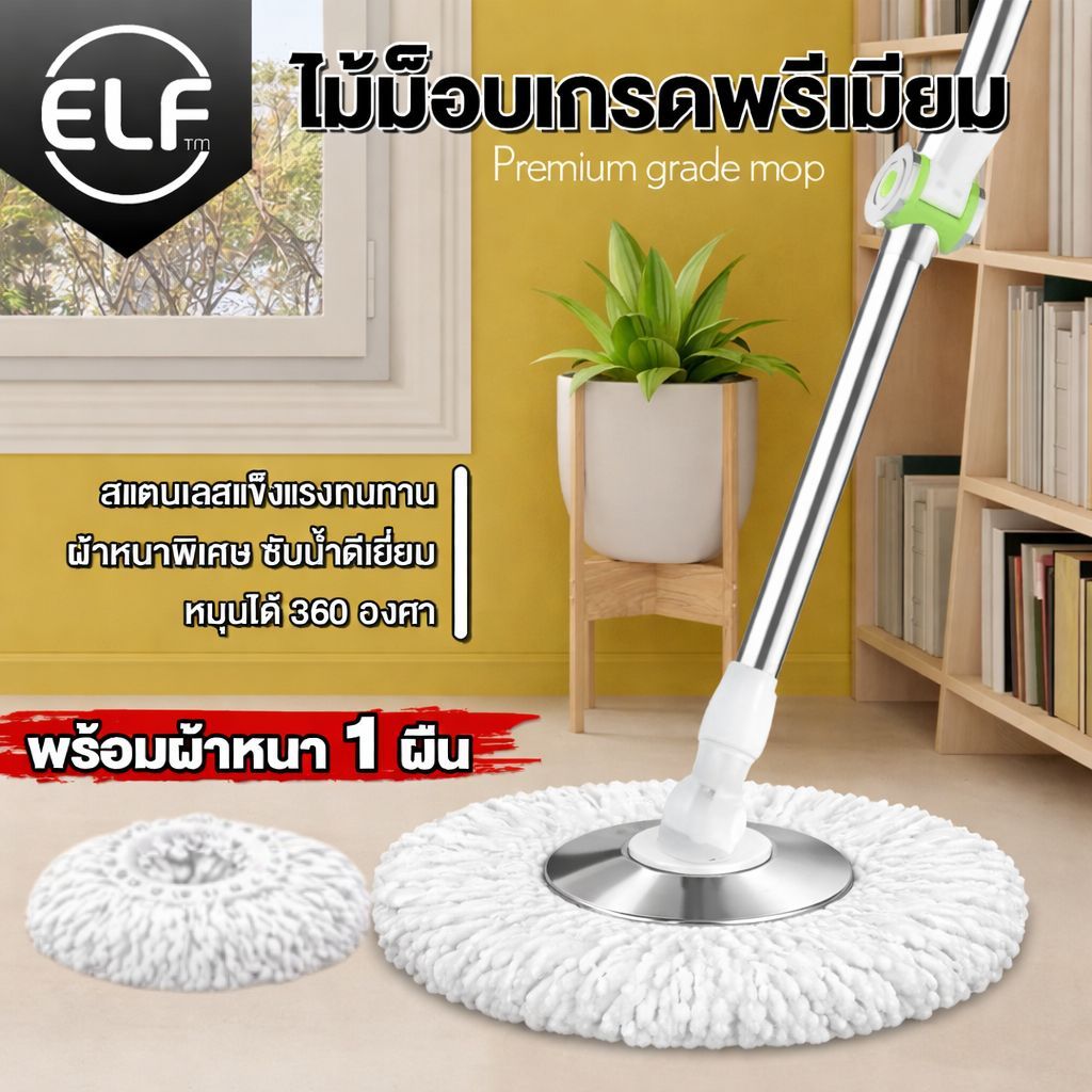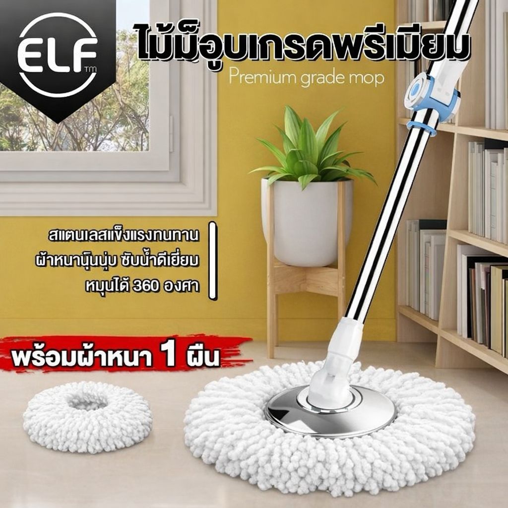 [ม็อบสแตนเลส] ELF Premium ไม้ถูพื้น พรีเมี่ยม ไม้ถูพื้นหมุนได้ 360 องศา ไม้ถูพื้นสแตนเลส แข็งแรงทนทาน ไม้ม็อบ รุ่น 4996