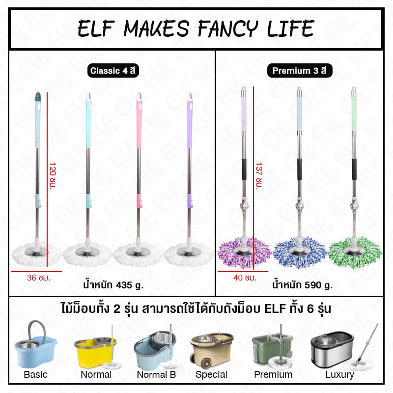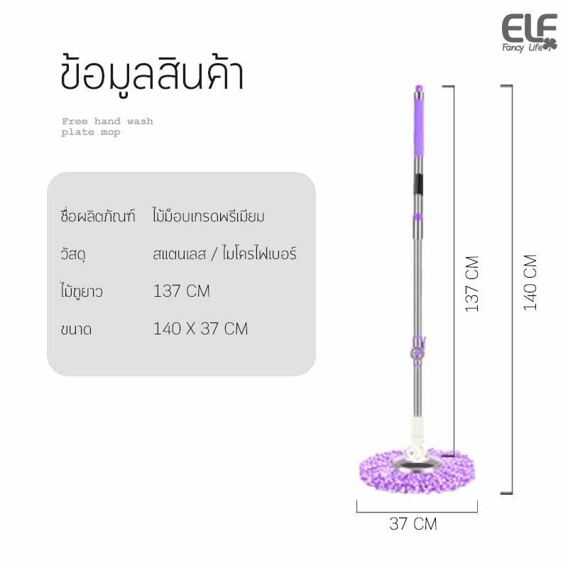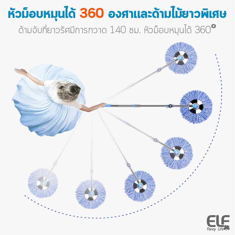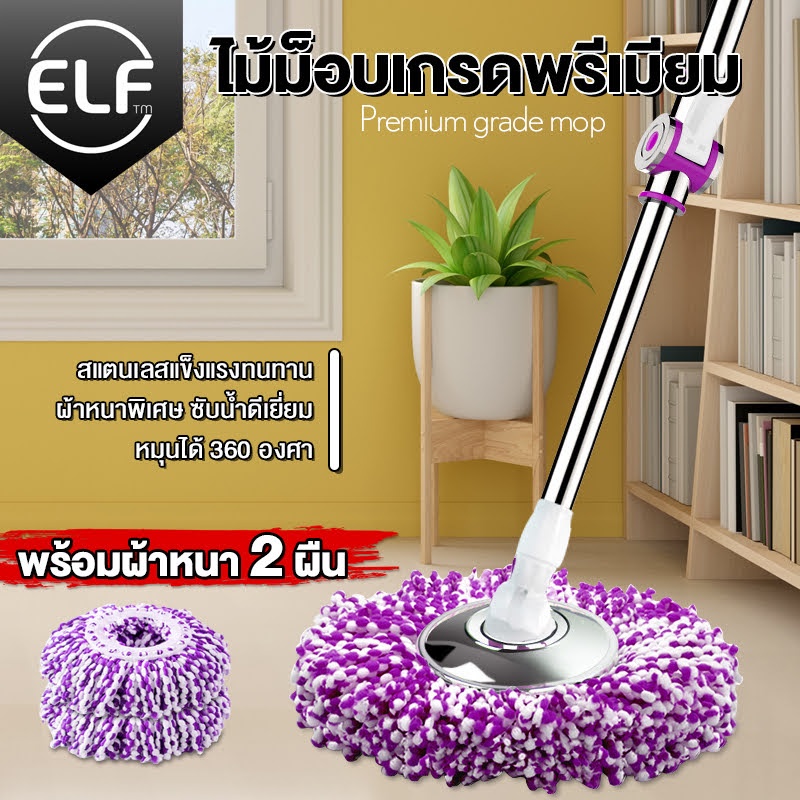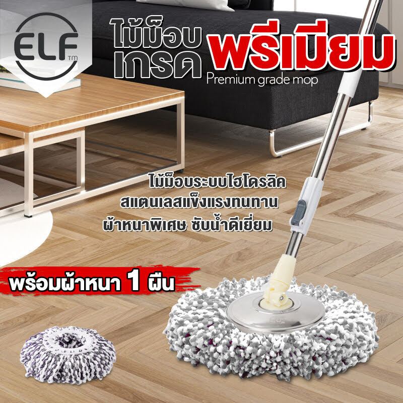 [ม็อบสแตนเลส] ELF Premium ไม้ถูพื้น พรีเมี่ยม ไม้ถูพื้นหมุนได้ 360 องศา ไม้ถูพื้นสแตนเลส แข็งแรงทนทาน ไม้ม็อบ รุ่น 4996