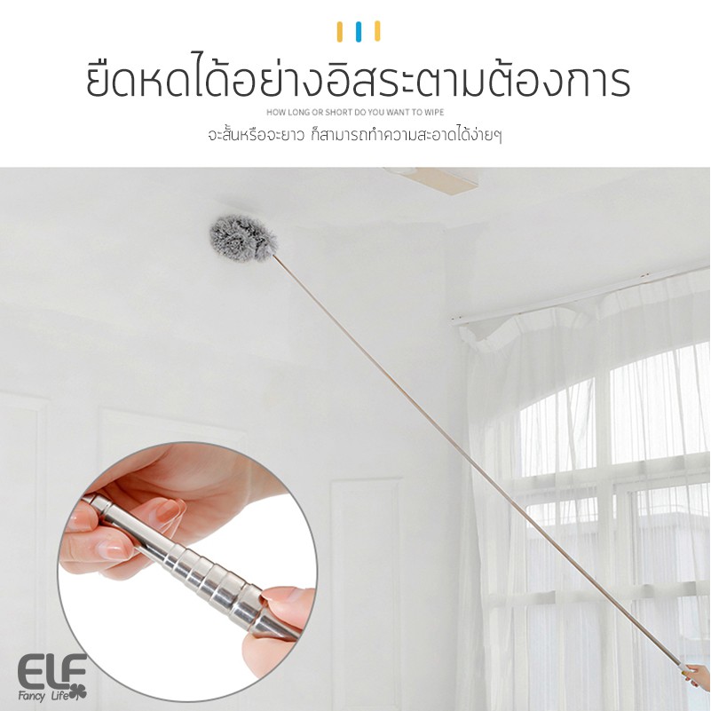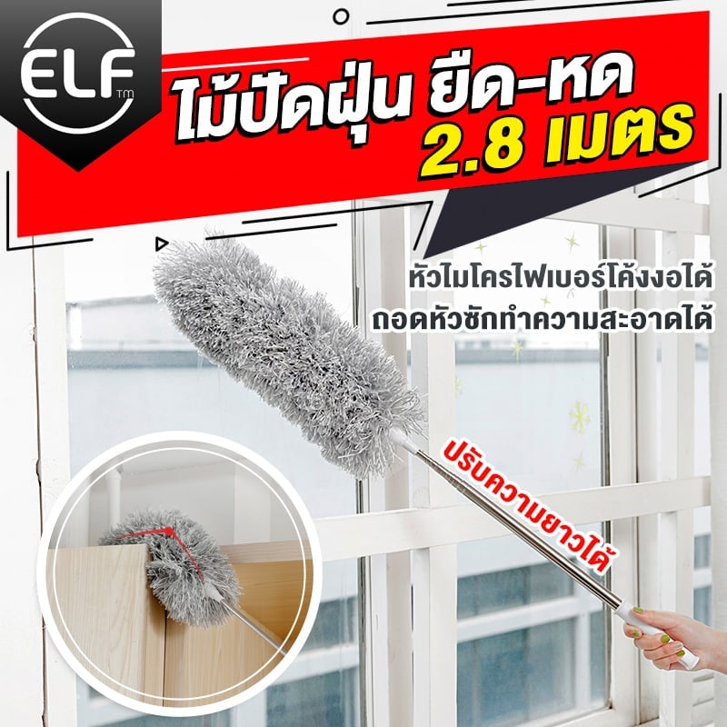 ELF ไม้ปัดฝุ่น ไม้กวาดหยากไย่ ไม้ปัดฝุ่นไมโครไฟเบอร์ ปรับความงอ ปรับยืดได้ 0.8-2.8 ม. ซักได้ ปรับความยาวไ ด้ รุ่น 4033