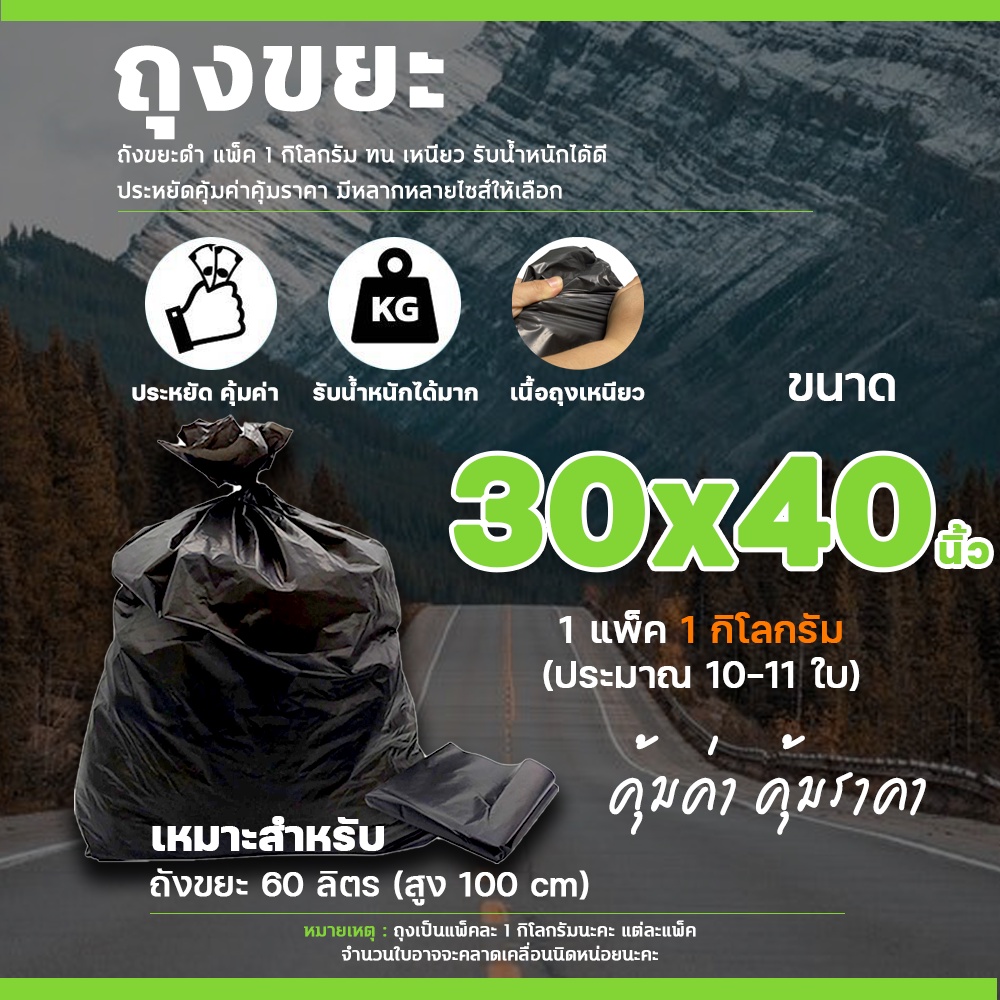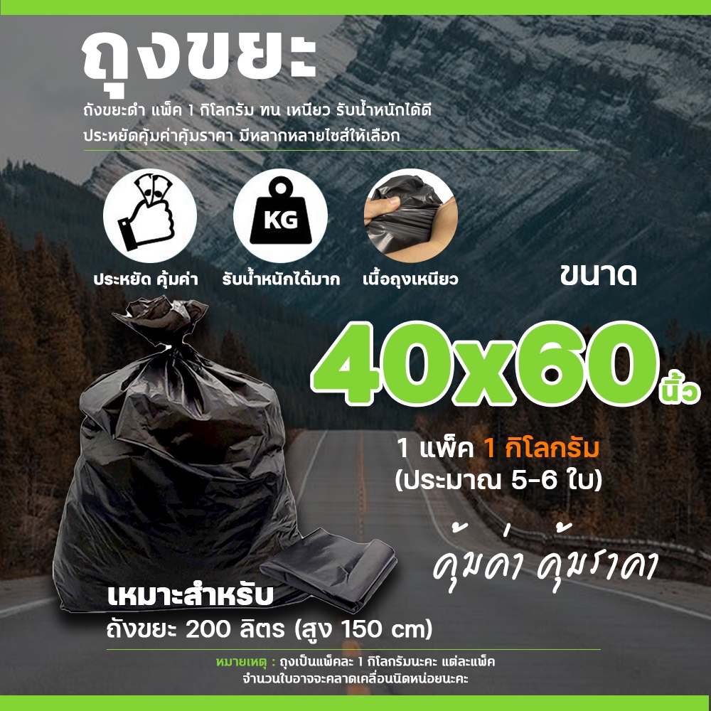 ถุงขยะดำ หนา 1แพ็ค ต่อ 1 kg ราคาถูกที่สุด!!! โรงงานขายเอง คุณภาพดี หนามาก ไม่ขาดง่าย #ID- 0085