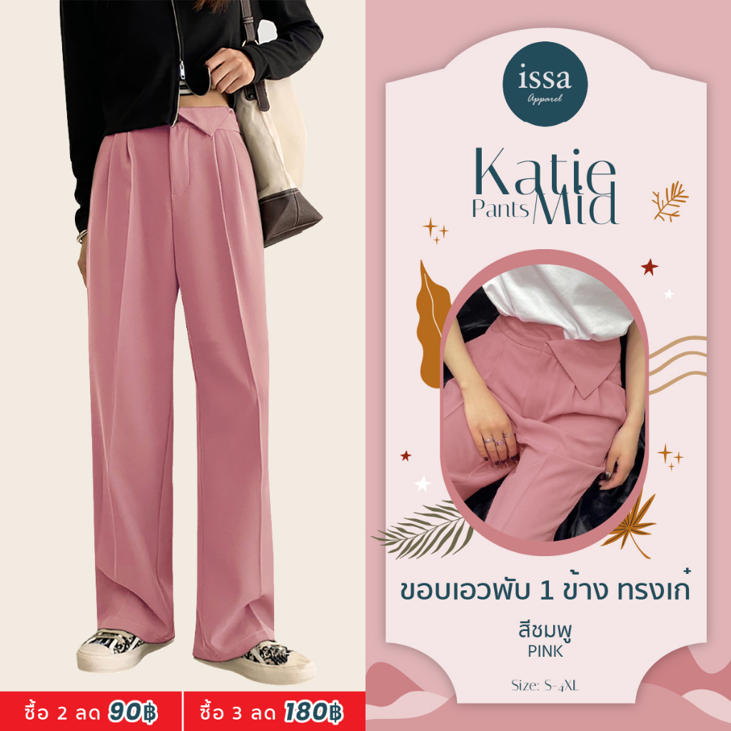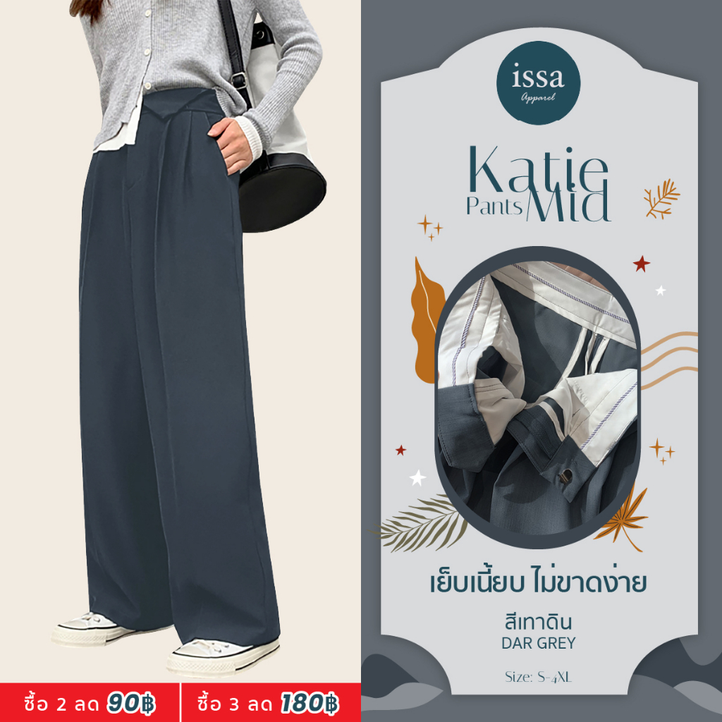 Katie Mid pants ส่งด่วน+ส่งฟรี ขากระบอกกลาง Issa Apparel ขอบพับจีบหน้า2จีบ เกรดพรีเมี่ยมกางเกงดำ