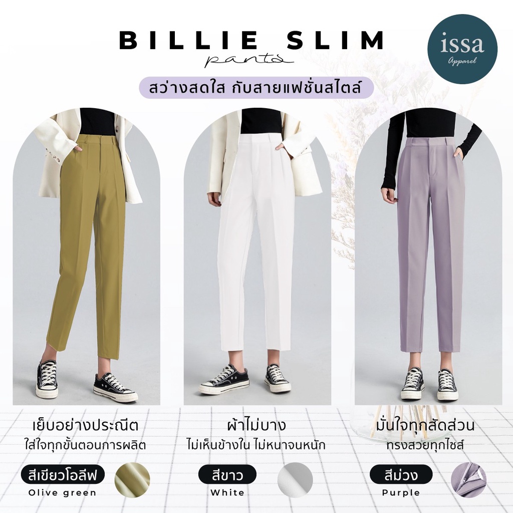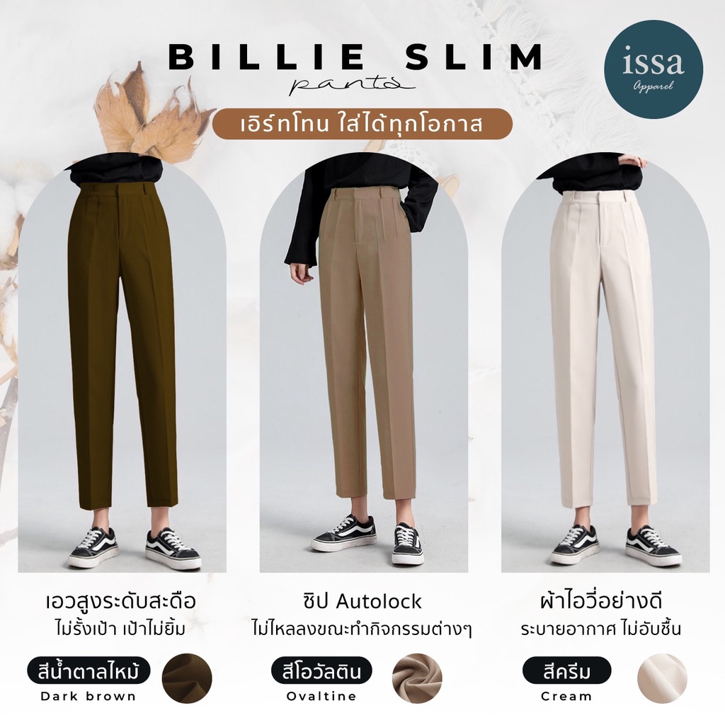 Billie Slim ทรงกระบอกเล็ก ส่งด่วน+ส่งฟรี (S-9XL) ผ้าดี ทรงสวย ไม่ต้องรีด กางเกงใส่ทำงาน กางเกงผู้หญิง เสื้อผ้าแฟชั่น