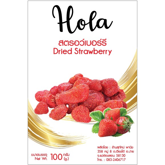 สตอเบอรี่อบแห้ง ไม่มีน้ำตาล 30กรัม ตรา Hola