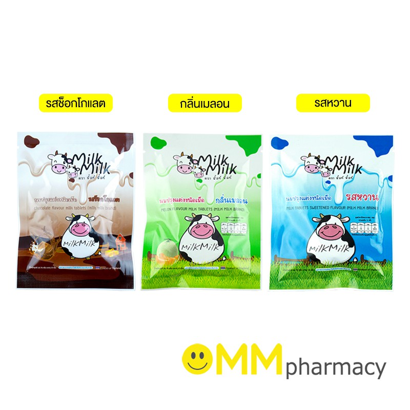 Milk Milk นมอัดเม็ด 15 เม็ด/ซอง รสหวาน/ รสช็อกโกเเลต/ รสเมลอน
