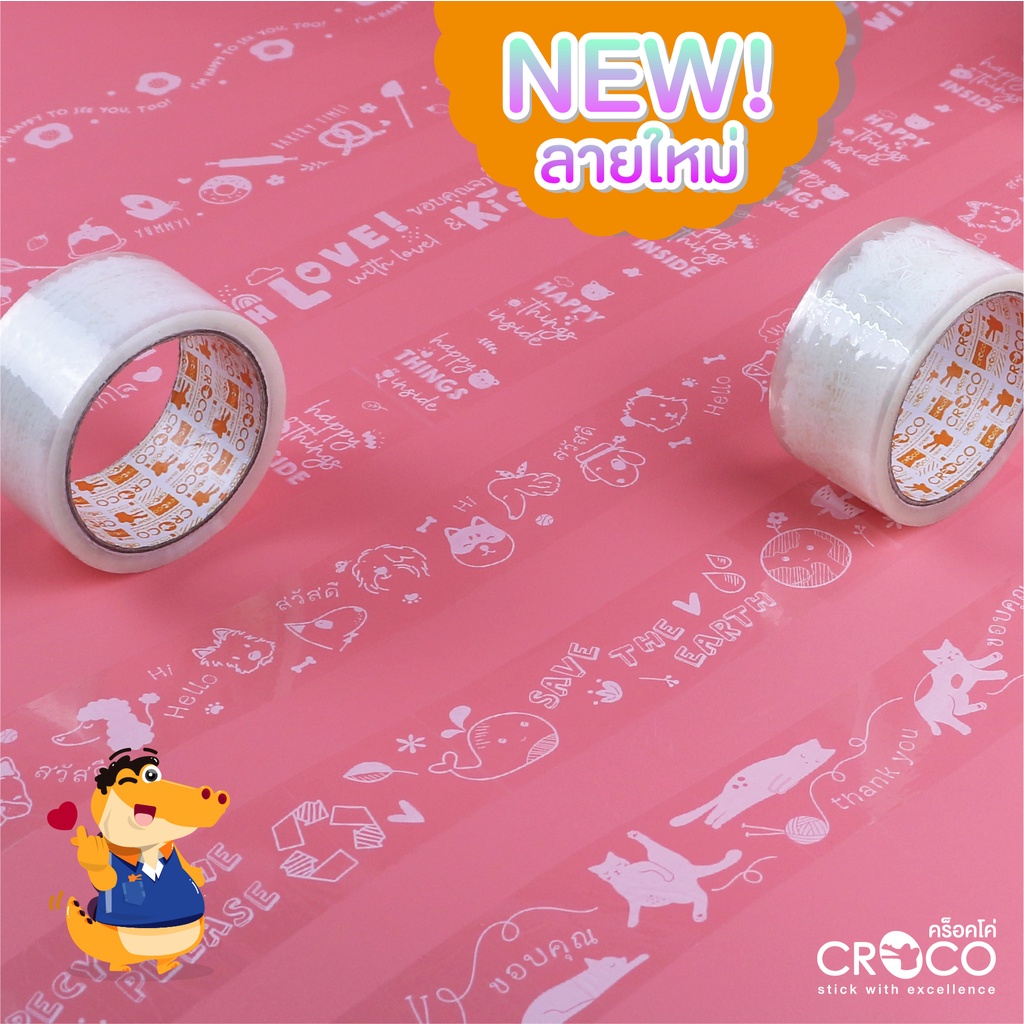 CROCO เทป OPP ใส พิมพ์ลาย 48มม.x45หลา 1ม้วน (TP4845)