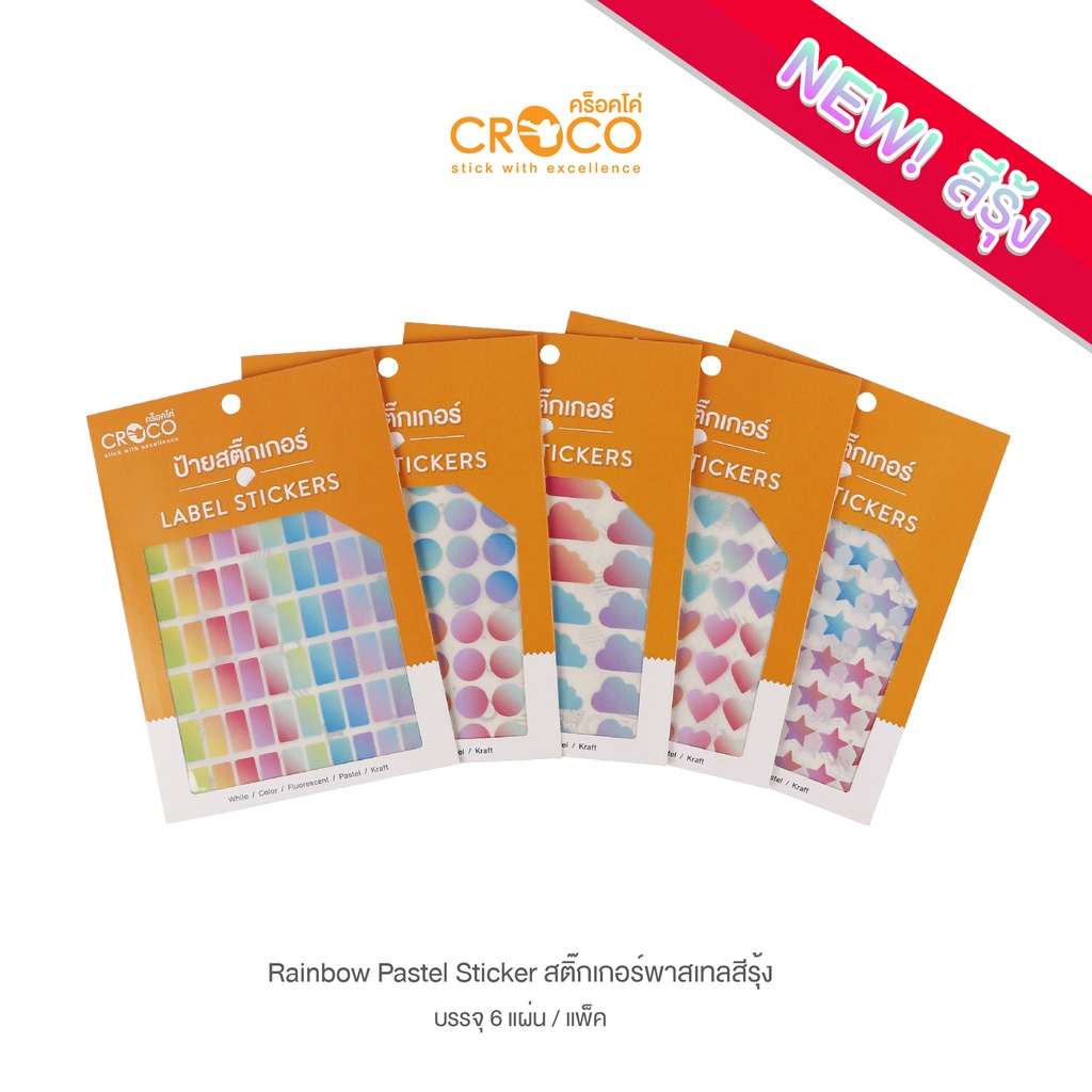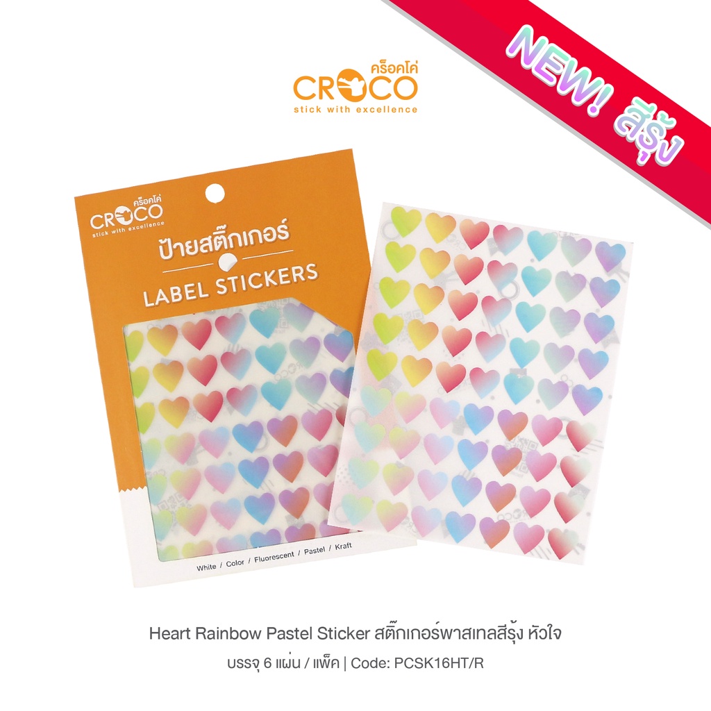 CROCO สติ๊กเกอร์พาสเทลสีรุ้ง รูปหัวใจ (PCSK16HT/R)