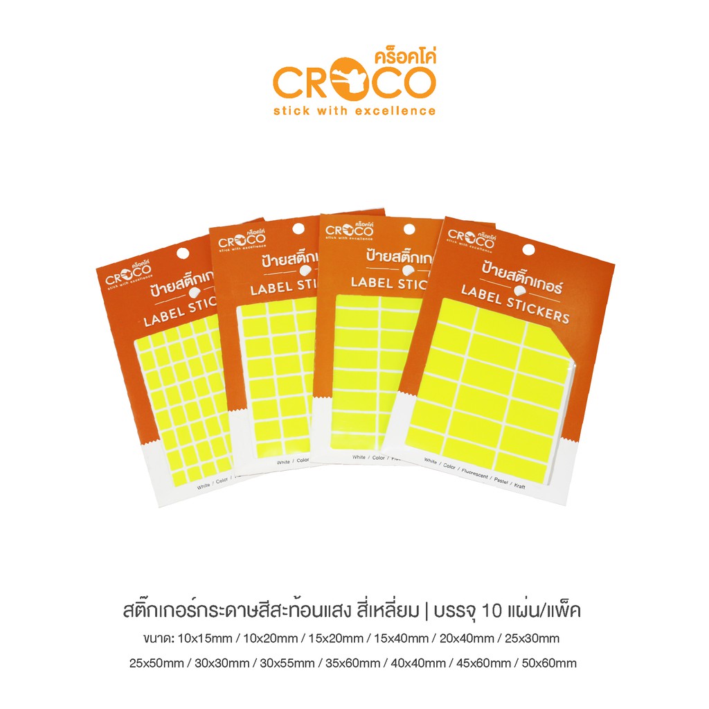 CROCO สติ๊กเกอร์สีสะท้อนแสง สี่เหลี่ยม สีเหลืองสะท้อนแสง